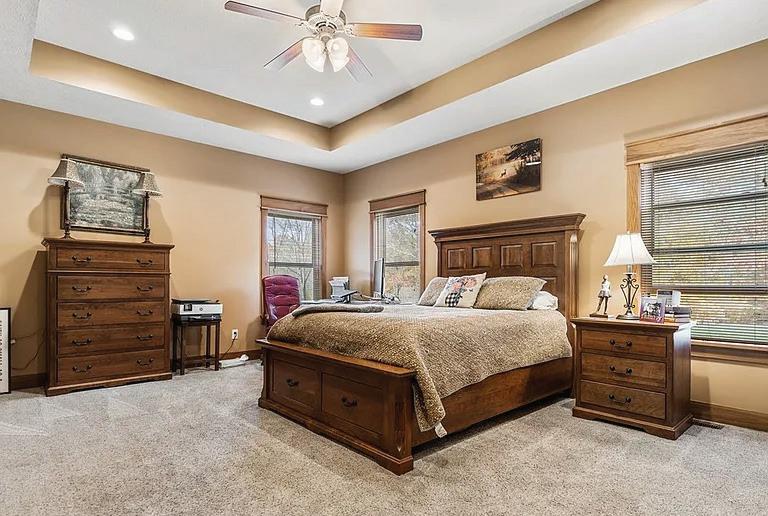 This beautiful estate property is located on 1.5 wooded acres. Professional landscaping adorns this magnificent property located in the heart of the city. There are three bedrooms on the main floor and a large sleeping area on the second level. The full size walk-out basement has room for 1-2 more bedrooms. Also included on the main floor is a large atrium with skylights for all your indoor plants. There is a formal living and dining room, a kitchen dining area, a huge gathering area with Brown County stone fireplace and a lovely office at the front of the dwelling. The primary bedroom is a large, beautiful retreat with door to the expansive back decking. The primary bathroom includes a circular custom-built sauna/shower combination. The second and third bedrooms share a full bath and have their own laundry room. Upstairs you will delight in the 486sq ft sleeping area for extra bed space and guest overflow. This area can really be anything you can envision but was originally intended as a grandchildren's dormitory. The basement is really a house within in a house with a full kitchen, full bath, extra spacious gathering area, and it walks out into the professionally landscaped backyard. There are several other rooms that have been used as an exercise room, office with a wrapping station, and several storage rooms. There is also a billiards room and pool table is included in the sale. This is a lower level living area and not your average basement due to the abundance of windows and doors to the outside.