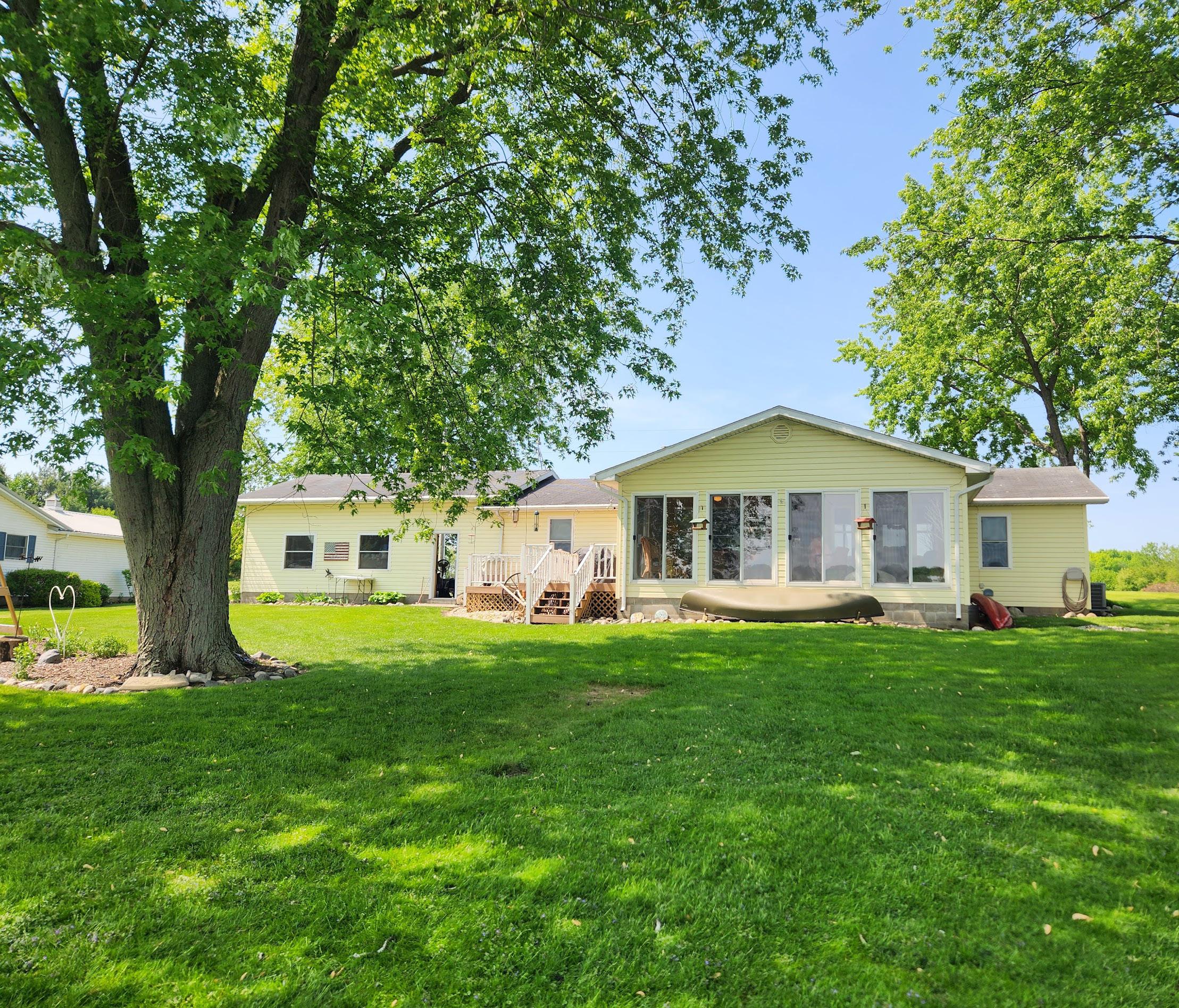 Enjoy the peaceful retreat that this 1872 sq ft ranch offers on the peaceful fishing lake of Little Turkey! Enjoy stunning views with 124 ft of waterfront property from the 4 season room or deck overlooking the water and dock to remain. Cleared area has been created for a beach perfect for swimming. Oversized 23x29 garage with tall ceilings plus shed give plenty of room to store toys to enjoy the water. 3 bedrooms, 2 full baths. Home comes mostly furnished if buyer wishes including beds, furniture, dishes, grill, tools & fishing polls, bedding, towels, etc. Updates since 2017 include: new hot water heater, redone primary bathroom, new HVAC (furnace & AC), fire pit, workbench & shelving in garage, new dishwasher & microwave, gas stove, tree , landscaping and door to garage with sturdy wood stairs. Sellers say fish in the lake include bass, blue gill, crappie, sunrise pumpkinseed, walleye, catfish, guar, carp & more! This lakefront retreat would be perfect for a summer getaway property OR to live year round! SELLER IS UPGRADING the current 20 year shingles with 3-tab 50 year shingles. ALSO INCLUDED IN THE CURRENT PRICE IS THE BOAT, MOTOR AND TRAILER