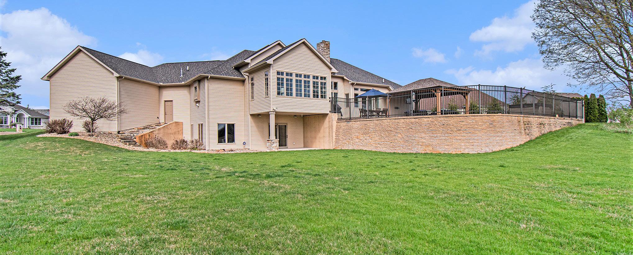 Once-in-a-lifetime opportunity to call one of the most premium homesites on the lake your very own! Over 350 feet of waterfront shoreline wraps around the expansive 7,800+ square foot residence. Gorgeous panoramic views as soon as you walk through the front door and from nearly every room. Open floor plan, beautiful hardwoods, and streaming sunlight from an abundance of windows. Main level primary suite boasts soaking tub, sunroom and private balcony. Walkout lower level is ideal entertainment space with 100” diagonal projection screen, fireplace & brass rail wet bar. Customize the remaining 1,280 square feet of unfinished lower level to your personal liking. Everything and more. 5 BEDS | 4 FULL, 2 HALF BATHS | 7,844 SQFT. | $1,740,000