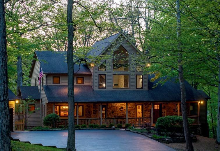 One-of-a-kind, Handcrafted Log Cabin/Chalet with 26ft Vaulted Ceilings/Stone Fireplace nestled on a private, 1+acre setting with a panoramic view of the Ohio River and local parks/greenspace/ city amenities nearby! The full-scribed logs used in the home range from 10 to 24inches in diameter. Other features include new Kitchen Cabinets/Counters (2023/24), Exterior of the home was stained in 2023, Newer HVAC, Pella Windows, Loft area for Study/Work space, Walkout from Great Room to 27x24 deck, Oversized 2-car garage, EV ready garage, Partially Finished Lower Level with Walkout, Roughedin 1/2-bath.