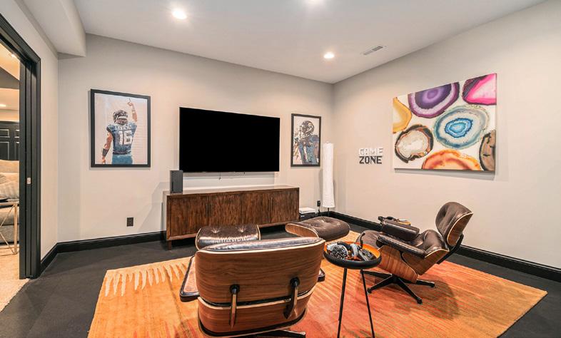 The full walk-out lower level boasts radiant heat flooring throughout. An expansive private workout area with pond views is your personal fitness sanctuary. Two additional bedrooms with custom hidden hinge ship-lap closets share a luxury Jack and Jill bath. A pet prep area simplifies your day with a custom dog bath and washer/dryer hook-up for easy clean-up