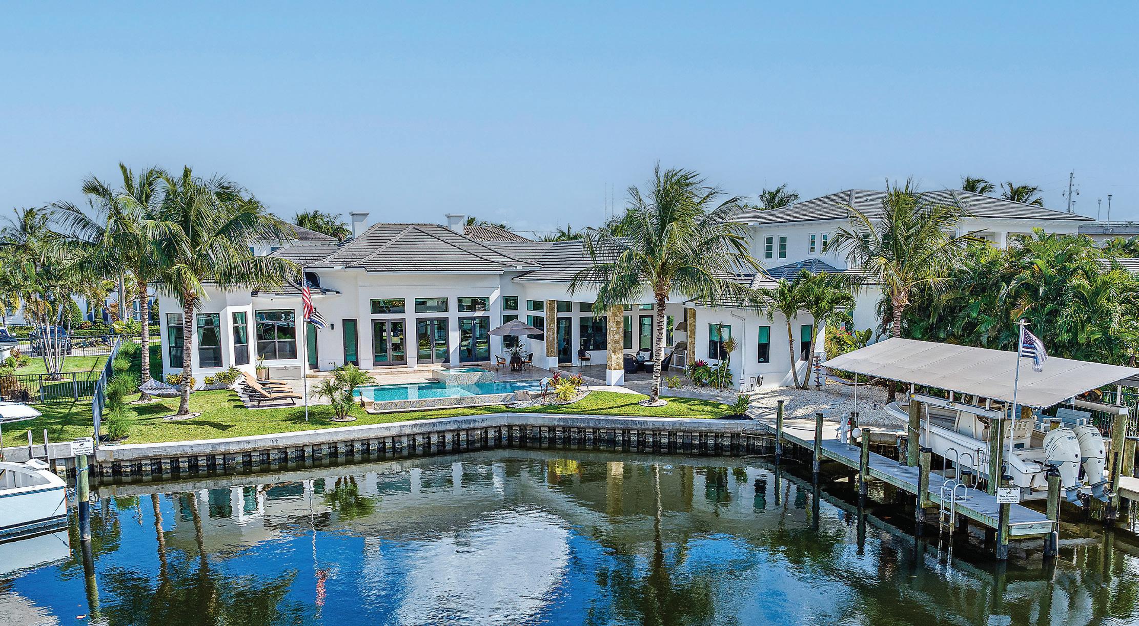 Direct Intracoastal offering 325 ft of waterfront & 200’ of dock merely 15 min to Worth Ave, One Flagler & PBI. This estate includes a primary & secondary residence affording 8300+ SF of living space surrounded on two sides by water. The Primary residence features a 17’ backlit quartzite island, water’s edge dining & living areas, a 5-room owners suite with panoramic vista’s, & an ocean-facing rooftop terrace! Waterfront kitchens & great rooms are surpassed only by the 300’ of coastal loggia’s & walkways connecting the dwellings. Reimagined, the secondary residence offers its own waterfront living areas, kitchen & pool. This property offers unprecedented security & privacy & exclusive tax incentives to qualified buyers. Inquires encouraged