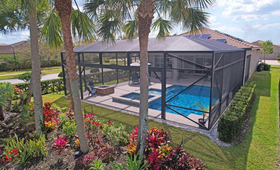 2 BEDS • 2 BATHS • 1,932 SQFT • $695,000 Location-location-location! This modern oasis is only a short walk to the Talavera clubhouse and minutes to the prestigious PGA village and golf courses! This impeccable Lago model has upgrades galore. Full of designer trends: quartz countertops, crisp white custom cabinets, cook top & wall oven, crown molding, soft white recessed lighting & plantation shutters thru-out. The outdoor living is spectacular with a 24 x 12 covered patio and a spacious extended screened patio with a salt chlorinated pool & spa, large fire pit and an unobstructed view (picture frame screen) of the water and the deluxe landscaping. This luxury retreat is full with hurricane impact windows and doors. Its also equipped with whole house solar panels for power and energy efficiency. Reserve time to see this home! This residence is movein ready and close to restaurants and boutiques and with in walking distance to the Talavera clubhouse, pool(s), gym, pickleball and activities. The primary bedroom suite has custom barn-door bath entrance and large walk-in closet space. There is a 3rd room which can be a dedicated home office or exercise room, and the inviting guest suite has a bright, contemporary look for a relaxing stay. The storage space in this home is fantastic with walk-in closets and a large kitchen pantry, under counter lighting, new fans and lighting fixtures thru-out, a spacious laundry-room with wash tub & cabinets. The large garage can accomodate the richest of taste in toys. Minutes to beaches, shopping, churches, and commuting. Come see this captivating oasis and you’ll fall in love with it and its location!