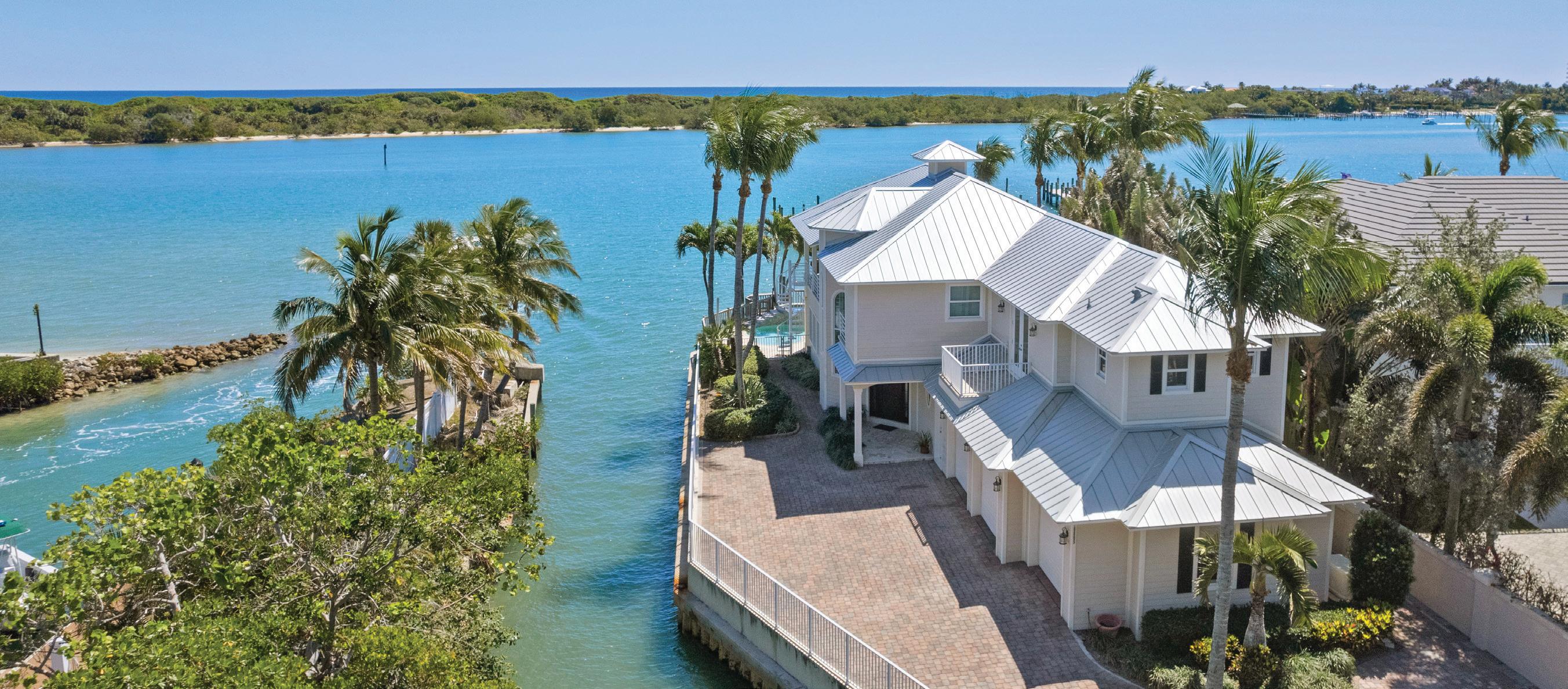 DREAM BIGGER! This sophisticated waterfront home in Sailfish Point surprises with 270 ft of coastal frontage, easy ocean access, and exquisite custom finishes curated by an award-winning design team for the ultimate in modern luxury living. This architectural masterpiece is sure to impress with sparkling water views and golden sunsets from every room! The newly completed 800 sq ft deep water dock is built to accommodate large vessels and is accompanied by a 12x12 ft wave runner platform that is perfect for all of your smaller toys. The home’s bespoke pool and spa area light up the night with water and fire features and the breezy veranda and summer kitchen connect to a fabulous two bedroom, three bath guest house. Enjoy world-class amenities, extensive security, a full-service marina, and private travel at nearby Stuart’s Witham Field. The combination of luxurious living spaces, breathtaking waterfront views, and unparalleled resortstyle amenities makes this a truly exceptional opportunity that you won’t want to miss.