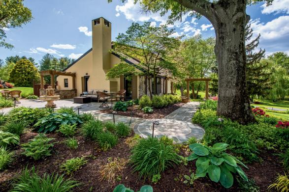 Outside, the breathtaking pool area, surrounded by reclaimed flagstone patios and artistically crafted stone walls, mirrors the artist’s palette, promising endless days of leisure and entertainment. The meticulously landscaped grounds, featuring flowering trees, ensure privacy and serenity. Despite the tranquility, the vibrant towns of New Hope and Lambertville, NJ, are just moments away. The home’s location within the award-winning New Hope Solebury School District adds to its appeal.