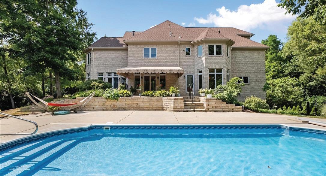 Designed for the entertainer, this magnificent two-story home boasts 4-5 bedrooms and 5 1/2 baths, situated on 14.5 acres with a private lake offering panoramic views. The gracious foyer welcomes you into a space of elegance, featuring a first-floor primary bedroom with a luxurious ensuite bath. The dream kitchen, complete with an island, flows into the expansive living areas, including a first-floor home office. Outdoor living is a delight with an expansive rear patio and an in-ground pool. The beautifully finished lower level is an entertainer’s paradise, featuring a wine cellar, home theater, circular bar, fireplace, second kitchen, and exercise room. This estate offers unparalleled luxury and a perfect blend of indoor and outdoor living spaces. 1-year Home Warranty Included too!