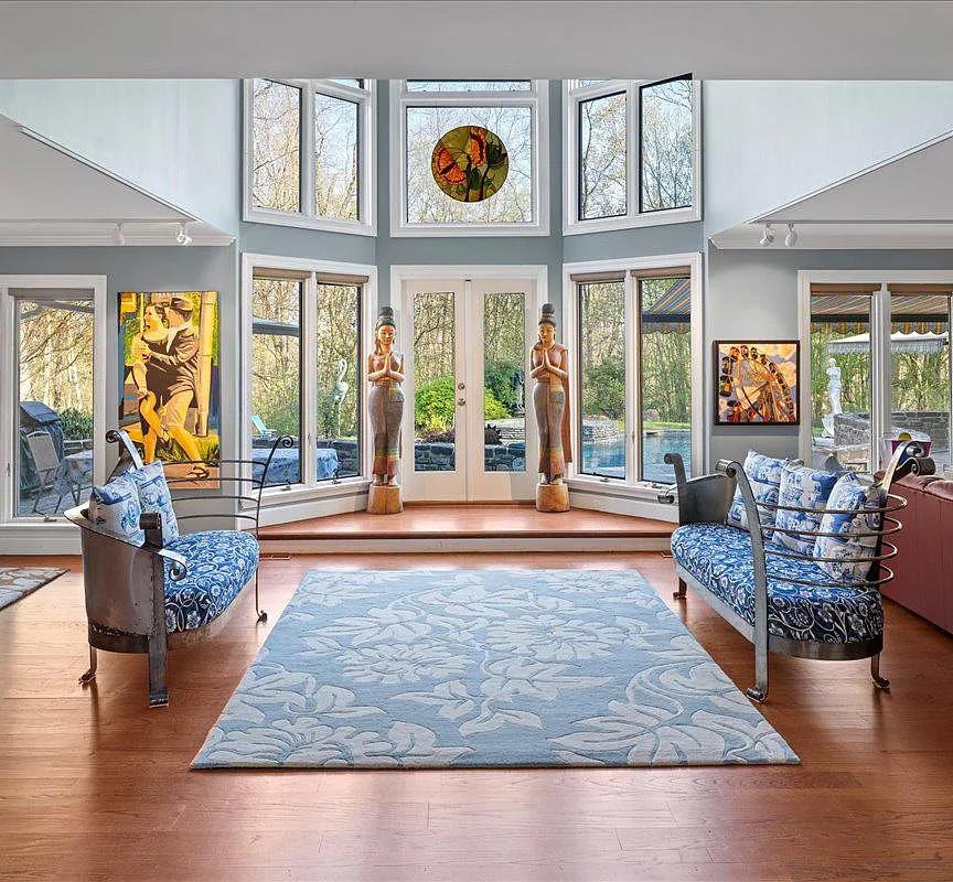 Discover tranquil luxury in Solebury Township, PA, on 13 magnificent acres in beautiful Bucks County. Just minutes from the artistic haven of New Hope, this home, known as Dark Forest, celebrates life and creativity. Nestled in a historic town famous for the Pennsylvania Impressionists, this property is owned by a generous artist who recently gifted 400 paintings to art lovers, embodying the town’s artistic spirit.