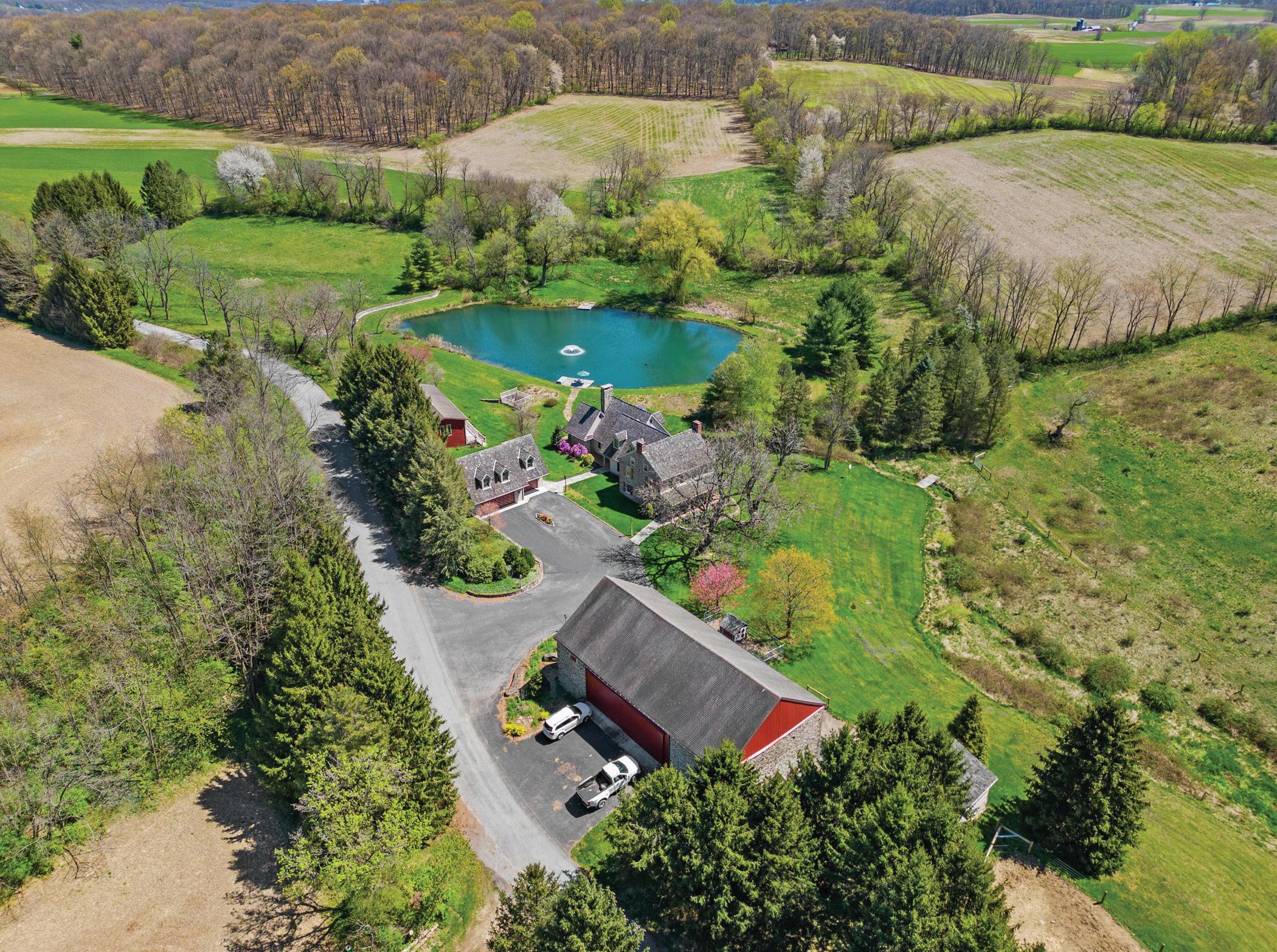 Welcome to this exquisite property on 37 peaceful acres in Berks County. Dating back to the 1750s, the estate exudes a unique blend of pre-revolutionary war charm and modern elegance. It’s a serene escape with magnificent views of the surrounding landscape. As you step inside the home, you are greeted by a spacious kitchen that is a chef’s dream. Featuring granite countertops, Miele stainless steel appliances, and a tall beamed ceiling, this kitchen is not only functional but a beautiful space. The open concept design of the home seamlessly connects the kitchen to the family room, making it ideal for hosting and entertaining guests while enjoying the panoramic views. The hand-made wooden shutters are authentic reproductions of the colonial period, including the cast iron hardware and copper weather strips on top. The cedar shake roof was made to last up to 40 years. The primary bedroom is a quiet retreat with a cozy sitting area, a wood fireplace, a walk-in closet, and a spa-like bathroom equipped with infrared heat light and steam shower. From the primary bedroom, you can enjoy stunning views of the pond and the natural beauty of the property. Outside, a deck provides the perfect spot to relax and soak in the tranquil atmosphere. Conveniently located just 30 minutes from Allentown, this is a truly exceptional property to call home.