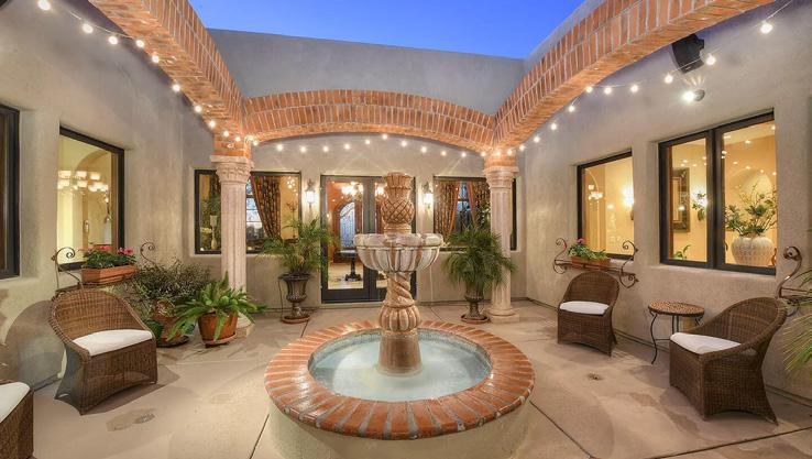 This is an absolutely amazing property! Magnificent Mediterranean style 6 bedrooms/4.5 baths plus guest casita/bath & office sits on a 3.4 acre lot with lovely mountain views. Home boasts an incredible brick boveda ceiling & custom designed marble medallion in main entry foyer, solid alder wood doors & cabinetry, Nutone central vac & intercom system, 18 carved cantera stone columns, Lowen & Windsor windows, fabulous chef’s kitchen with butler’s pantry, spacious entertainment room with 2 way fireplace & built-in bar plus an interior courtyard with cantera fountain. Attached casita with office has its own entrance & makes a perfect separate guest suite. East facing oasis like back yard has a private viewing deck, mature fruit trees, putting green, custom fire pit & deluxe pool & spa! MLS#: 22415392