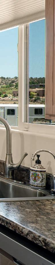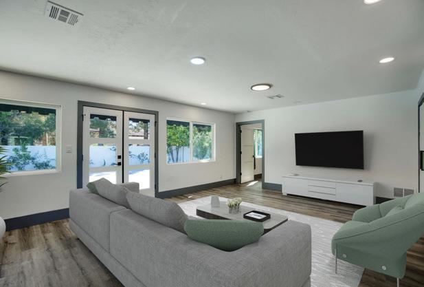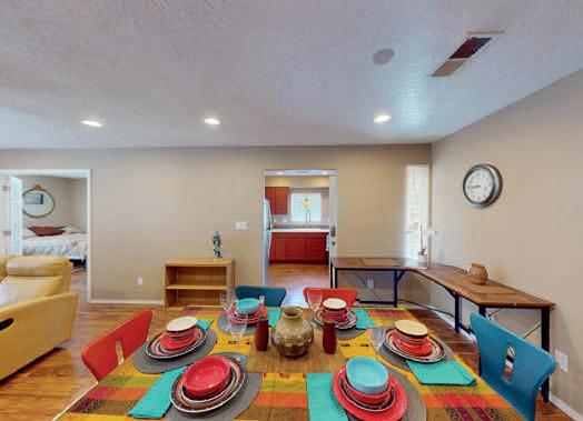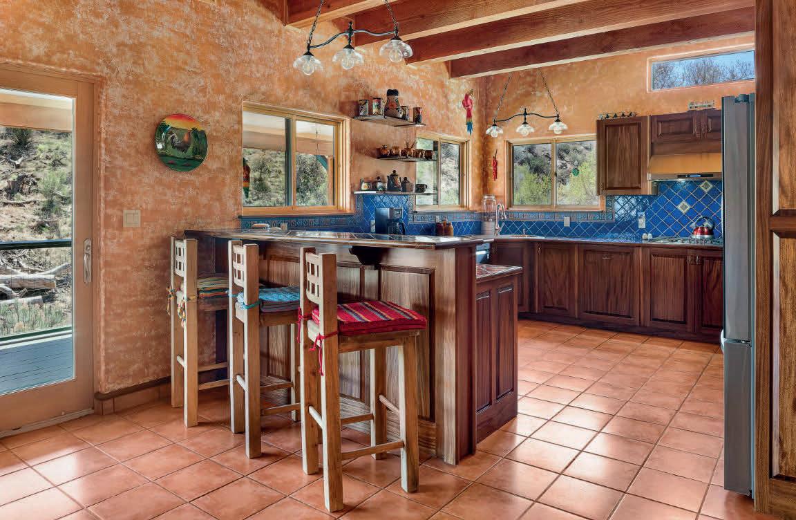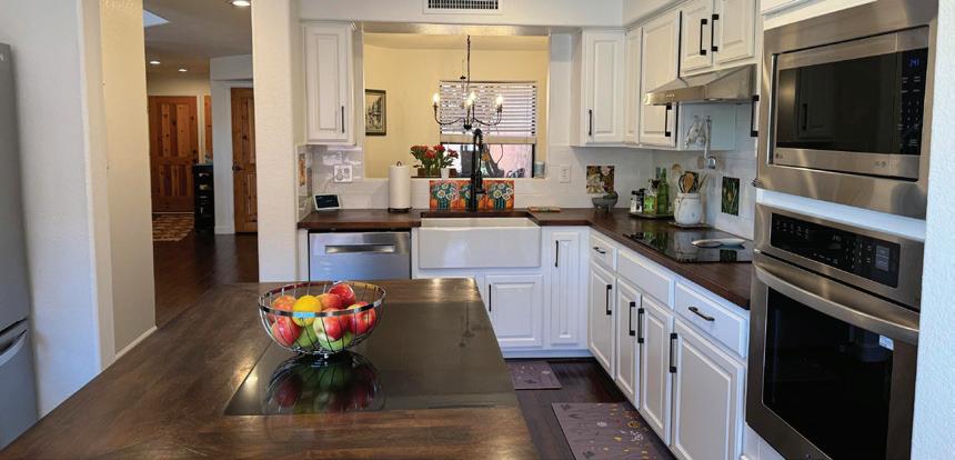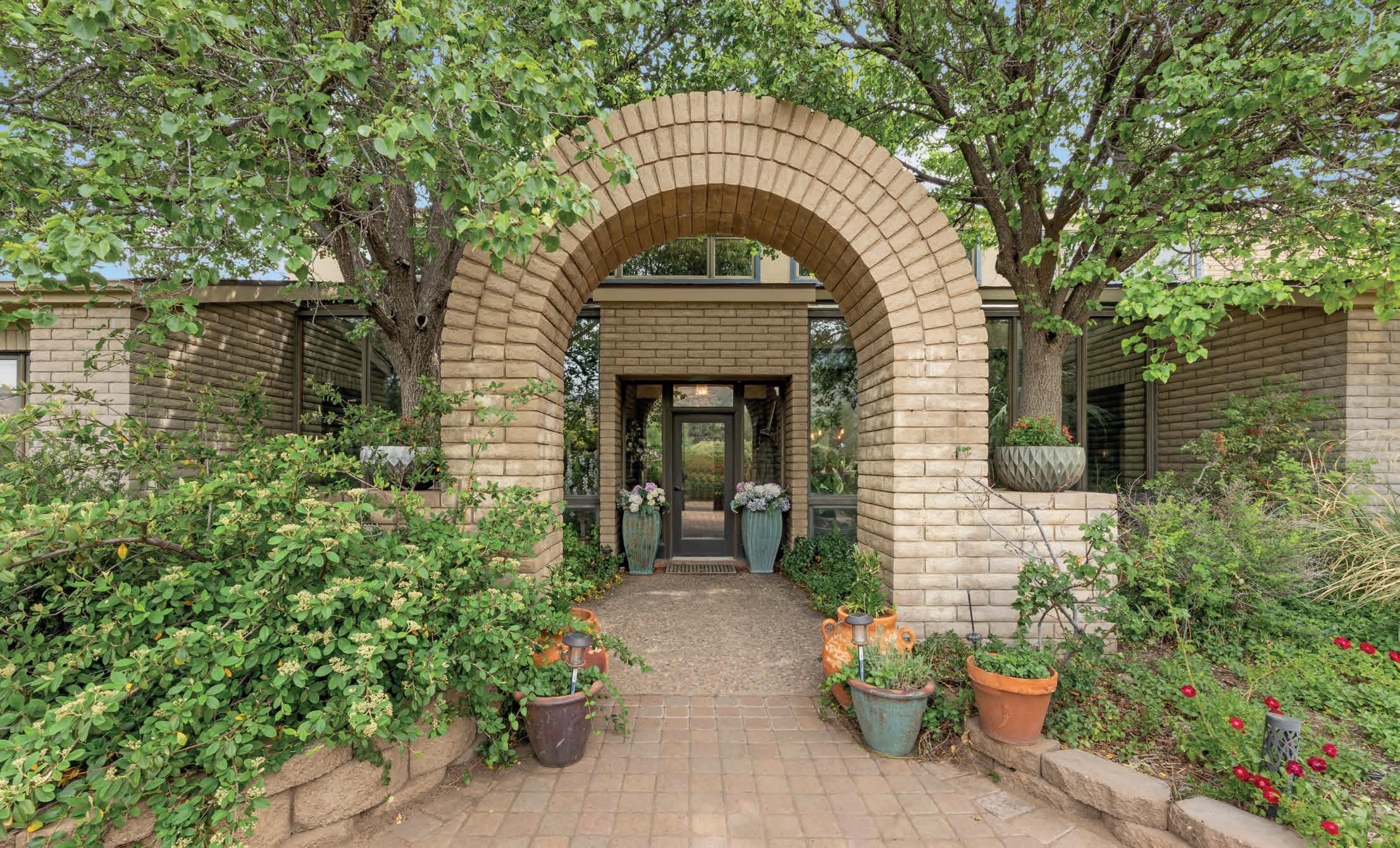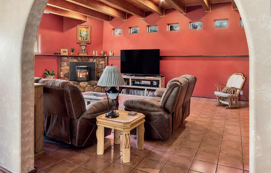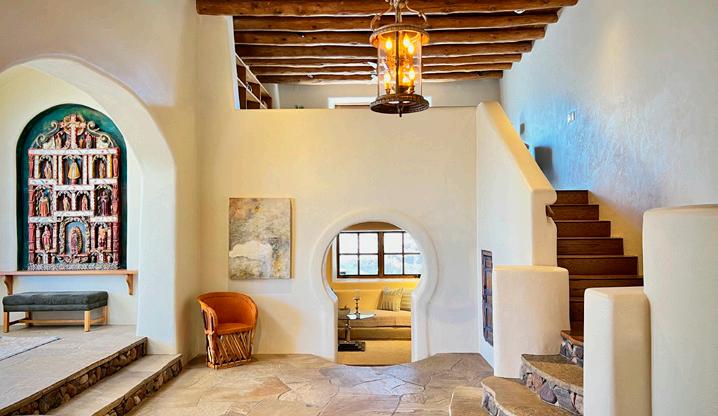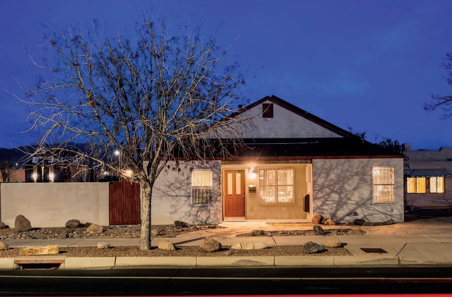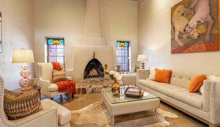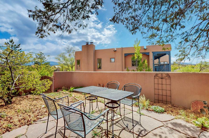 Located in an idyllic, prominent Eastside location on Upper Canyon Road, this 4BR/5BA (3BR/4BA main house and 1BR/1BA attached guest suite) appx 3,800 sq ft fully renovated/new construction residence on appx .45 acres has clean lines and an openconcept design with a large chef’s kitchen with custom cabinets, stainless appliances, a farmhouse sink, a large center island, and a casual dining area. The grand living room and dining room with vaulted ceilings is light and bright with a plethora of windows. There are marble tile and wood floors throughout, an exceptional, grand master suite with walk-in closet, artisan stained glassed windows, and en-suite bathroom with separate bath and glass shower. There is a privacy wall in the front and back, delightful outdoor portal/ patio alfresco dining areas, and a spacious oversized one-car garage with extra storage space. The property is situated on Upper Canyon Road, across from the Santa Fe River Park and Cristo Rey church, one of the most notable buildings designed by famed Santa Fe architect John Gaw Meem. The church was one of the most ambitious adobe buildings ever undertaken in New Mexico, requiring 150,000–200,000 individual adobe bricks, and is one of the largest adobe buildings in the US. Cristo Rey church is also notable for its historic altar screen, the Reredos of Our Lady of Light (carved in 1761) which is listed on the National Register of Historic Places.