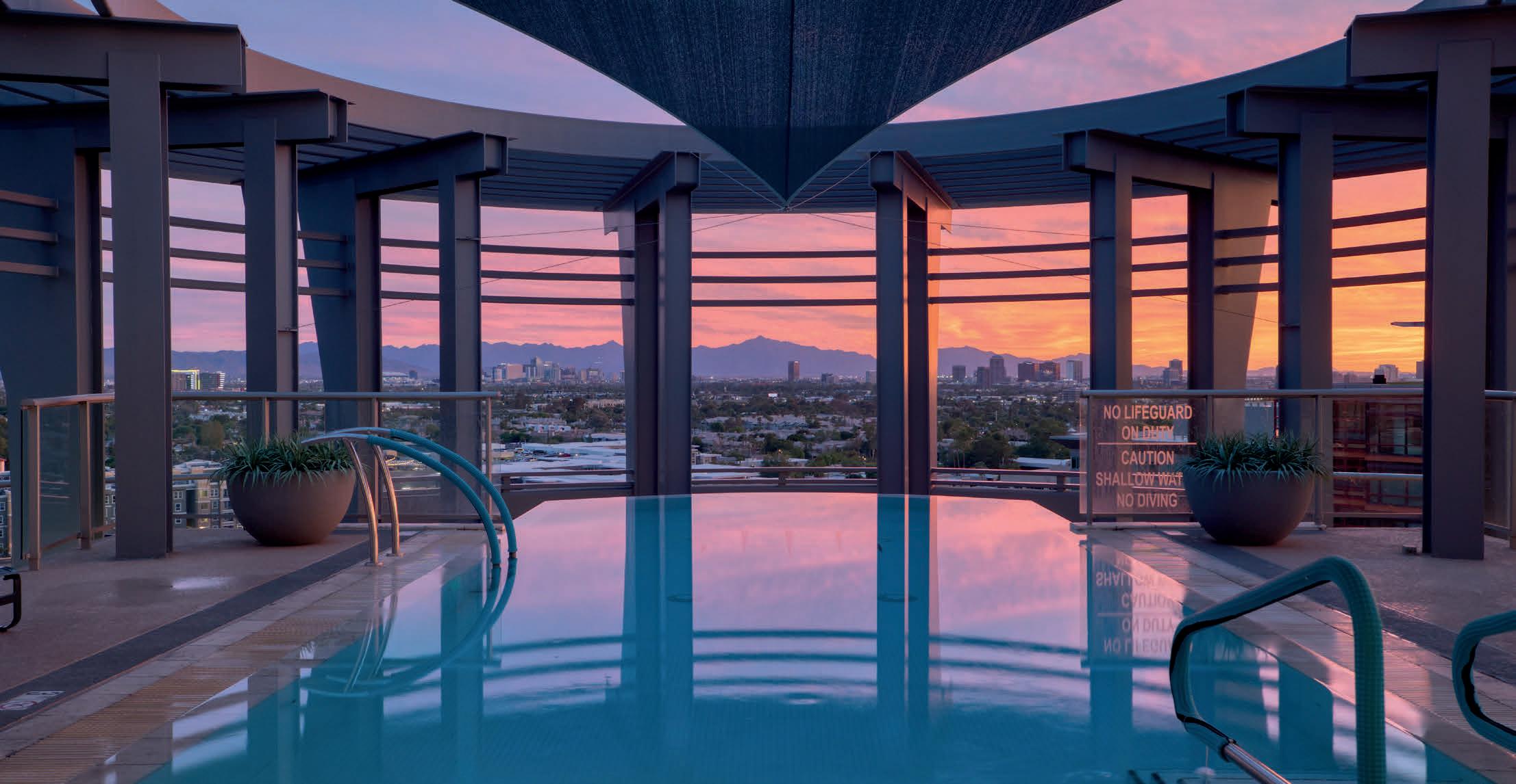 the epitome of high-rise luxury in the heart of Biltmore’s financial district. One of the few 3 bed/3 bath, 2,381 sqft condo in Biltmore Optima, offering breathtaking panoramic mountain and city skyline views. Unique split floor plan showcases two primary ensuite bedrooms with walk-in closets. The 2023 kitchen remodel features new cabinets and stainless-steel appliances, including a gas GE Monogram cooktop. This unit includes 3 secured parking garage spaces & a storage locker. Experience the ultimate convenience with proximity to some of the finest resorts & spas, shopping, dining, entertainment, & golf.