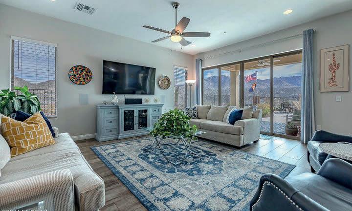 Incredible views and neighbors BLM land! A rare find! Nestled in the heart of Prescott’s most coveted area, this exquisite luxury home offers an unparalleled living experience, seamlessly blending sophistication with cutting-edge upgrades. Don’t’ let the garage door fool you, this is an oversized 3.5 car garage. No HOA! This residence excels in opulence and is meticulously crafted to accommodate multigenerational families, in-law suites with kitchenette, or to serve as a rental for both long and short-term stays, complete with its own separate entrance for privacy and convenience. Enjoy the majestic views when you immediately step in through the majestic 9 ft iron double doors with security door panel and be welcomed into a world where every detail has been meticulously crafted.
