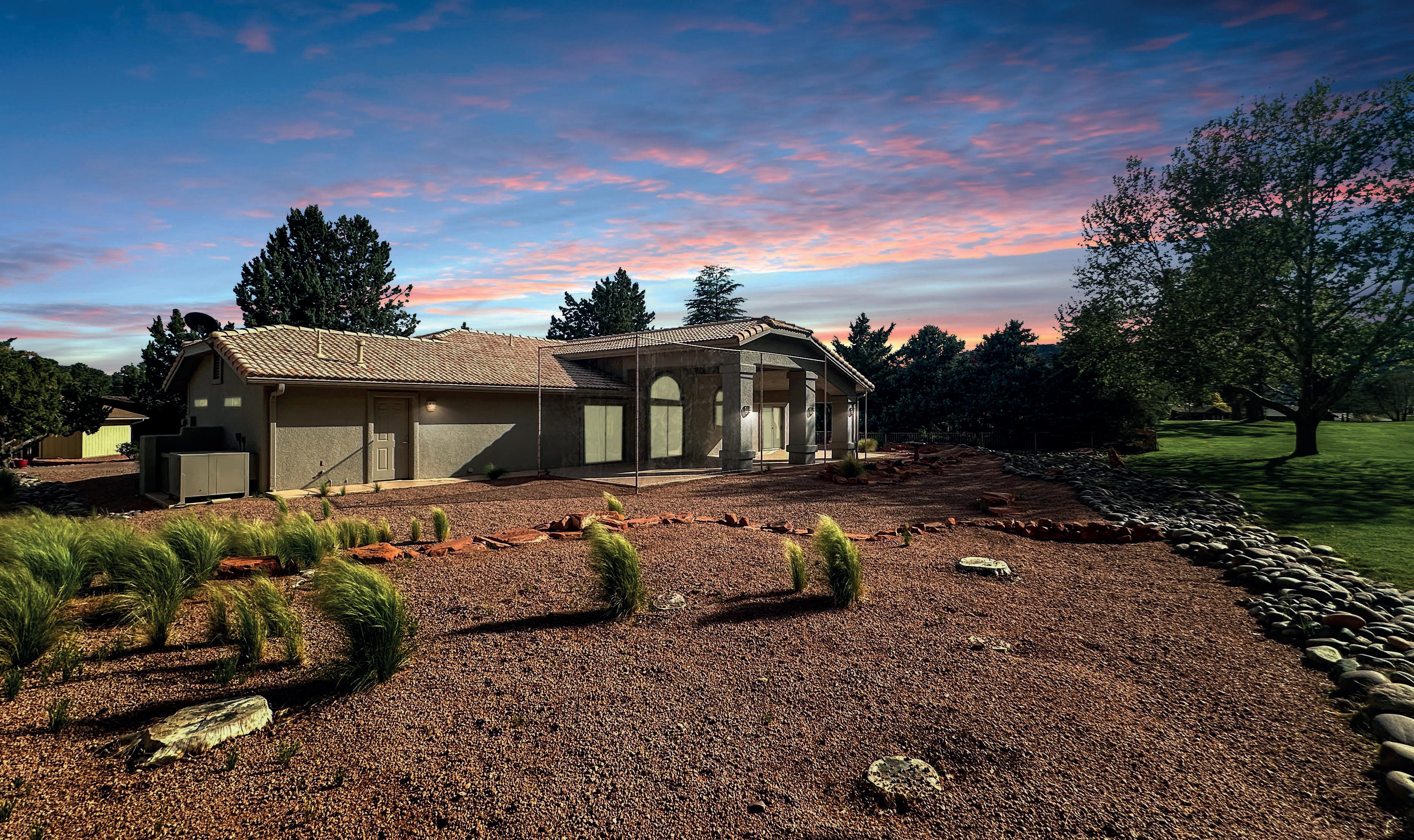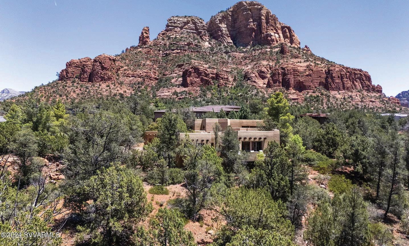 Welcome to an exquisite sanctuary of luxury & sophistication nestled in the prestigious Mystic Hills subdivision of Sedona. This magnificent residence embodies Contemporary Southwest elegance, offering unparalleled amenities & serene living in a tranquil setting. The Shepard’s fireplace is the centerpiece of the home creating an inviting ambiance for intimate gatherings & cozy evenings. With open & spacious oversized rooms, this home is designed to maximize comfort and luxury. 21’ high ceilings & expansive windows enhance the grandeur, flooding the interiors with natural light. The in-law suite, complete with a private entrance, offers a secluded retreat for guests or extended family, providing both privacy & comfort. Enjoy the tranquility of private courtyards & a custom water feature, ideal for relaxation or entertaining guests. Overlooking the beautifully designed interior, the large office space is perfect for working from home. The gourmet kitchen is a chef’s dream, featuring top-of-the-line appliances, custom cabinetry, and ample counter space. Experience the finest in Contemporary Southwest elegance, with design elements that blend modern sophistication with traditional charm, including beautiful Saltillo tile throughout. Situated in a tranquil setting, this home offers peace and serenity, making it the perfect retreat from the hustle and bustle of everyday life. Enjoy nature at its finest with hiking and biking right from your community.