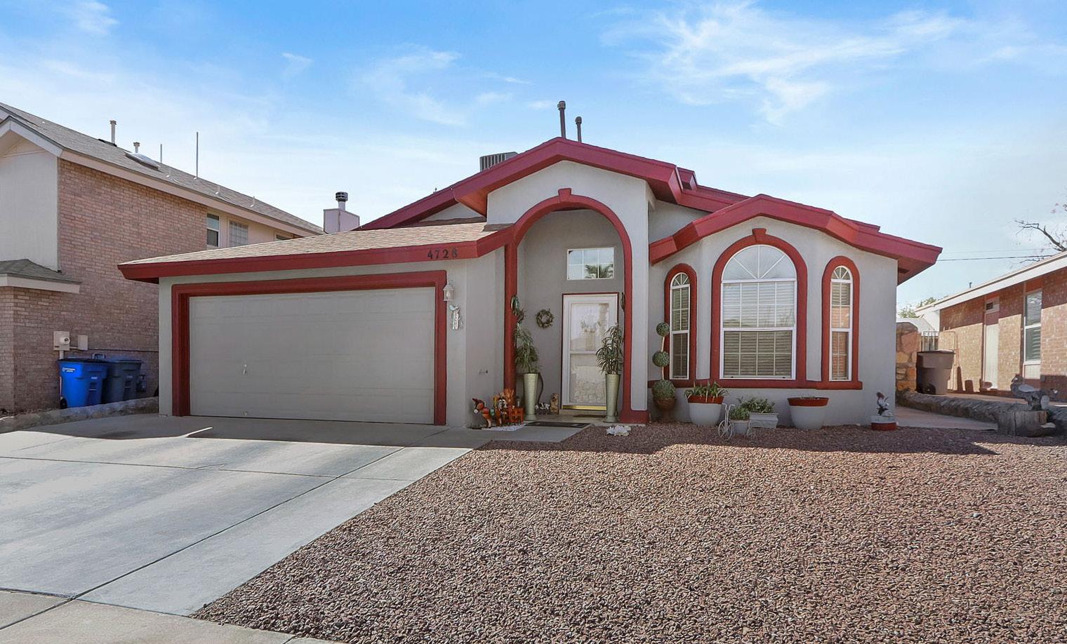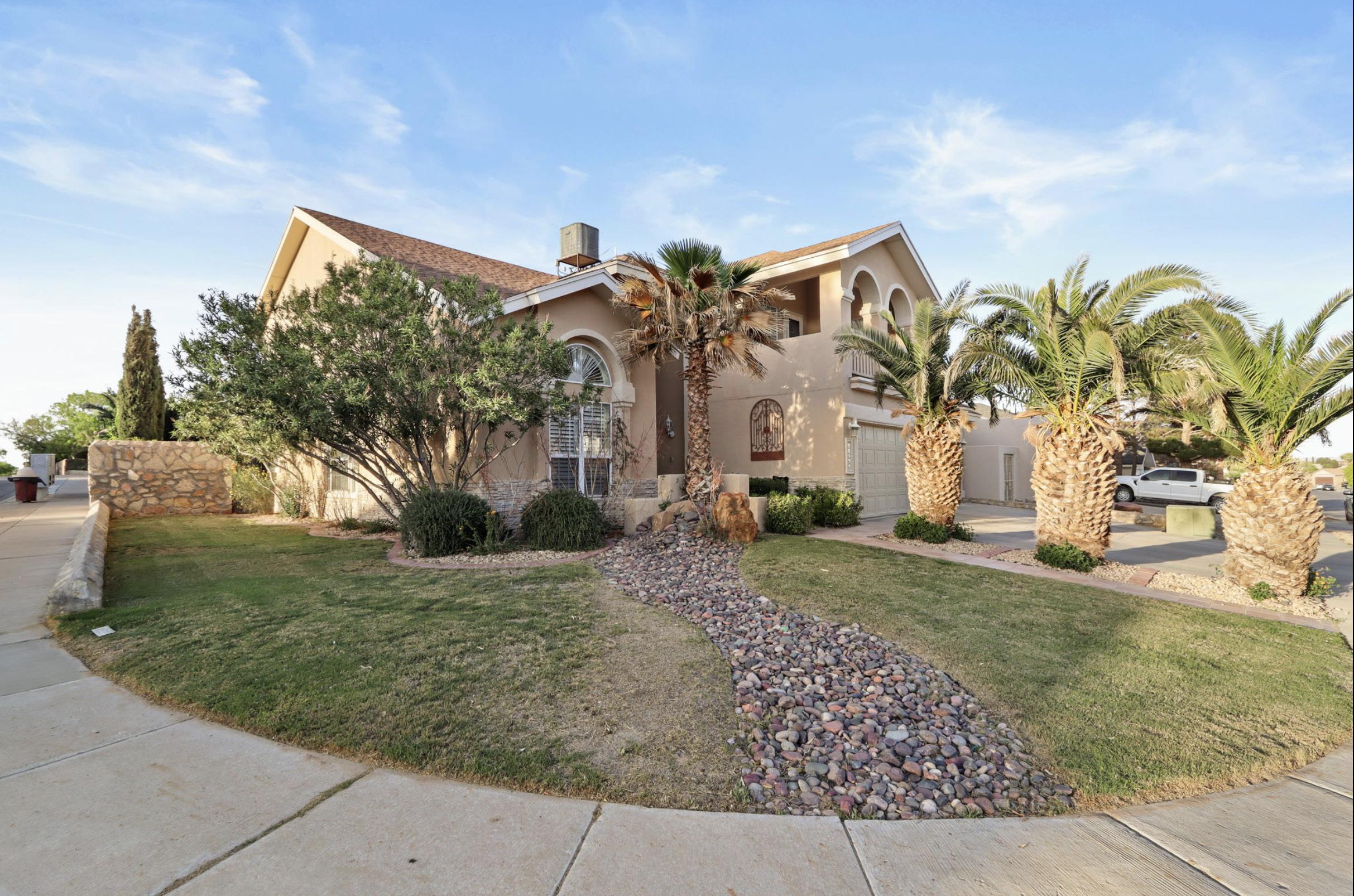 Welcome to your spacious corner lot oasis! This stunning home boasts almost 9,000 sq. ft. of lot space, providing ample room for outdoor activities ,dog run, and RV parking. Step inside to discover 2,358sq. ft. of luxurious living area, featuring 3 bedrooms, 2.5 baths, and 2 inviting living areas perfect for relaxation and entertainment. Enjoy the versatility of a flex room, ideal for a home office, gym, or playroom to suit your lifestyle needs. Stay cool year-round with the comfort of refrigerated air conditioning. Solar panels offer energy efficiency and reduce electric bill. Step outside to your expansive backyard retreat, complete with a serene fountain and a charming bar area, creating the perfect ambiance for outdoor gatherings and summer soirées. Large storage in the back which offers plenty of room to store items. Conveniently located in East El Paso, this home offers both tranquility and accessibility. Don’t miss the opportunity to make this your dream home!
