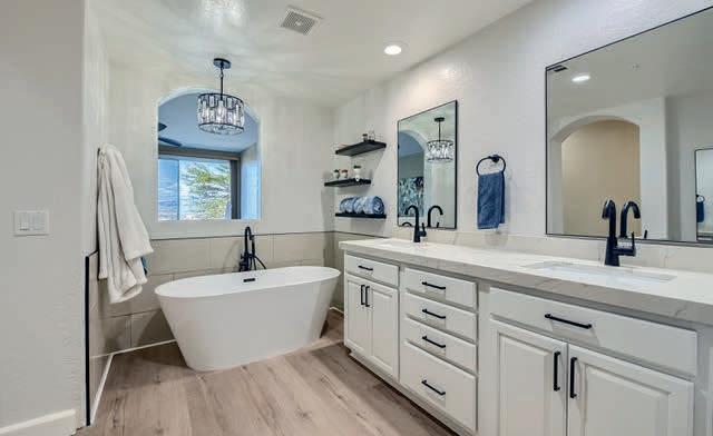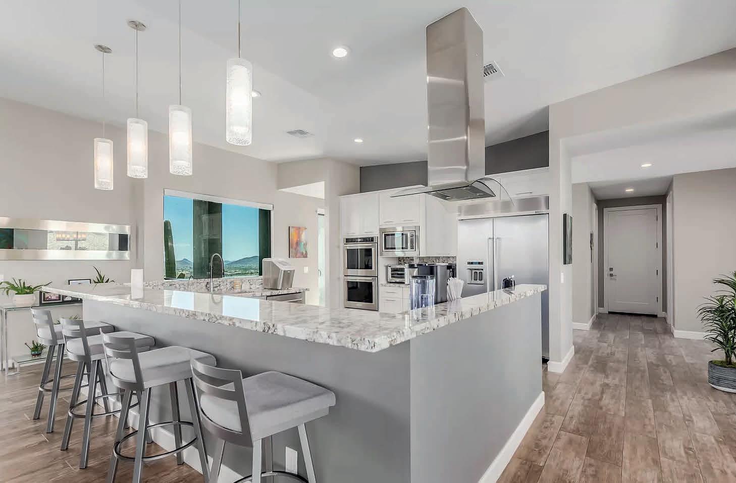 Panoramic Mountain views to the east and sweeping city lights and breathtaking sunsets to the west with nearby trails to open space within walking distance. Immaculate 100% high grade remodel that includes new roof, stucco, on demand hot water system with tankless hot water, new coolers, all new kitchen cabinetry, granite waterfall counters, marble backsplash, complete with all new WOLF BRAND Appliance package, pot filler and filtered water at the sink. The finished and oversized 3 car garage has epoxy flooring. TAS Security System 1 year paid in advance. And sooo much more!