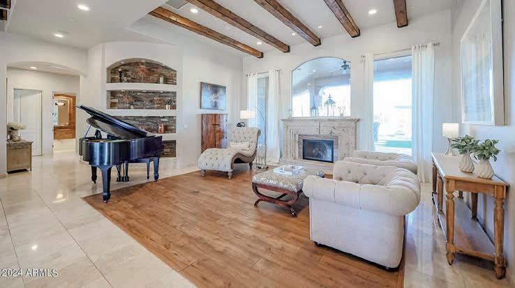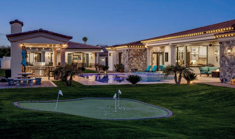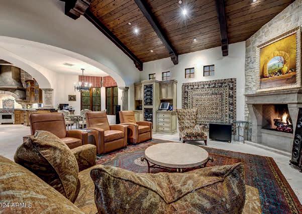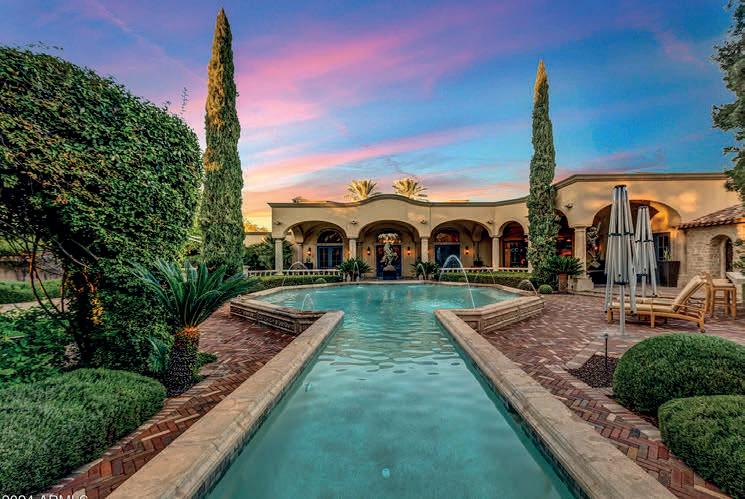 Luxury living awaits in this stunning residence featuring exquisite details at every turn. From the grand entrance with its opulent Portico and Cantera Pillars to the lavish interiors boasting hand-painted ceilings and maple wood flooring, every aspect exudes elegance. The spacious living area centers around a magnificent fireplace and offers seamless indoor-outdoor living with a view of Camelback Mountain. The gourmet kitchen is a chef’s dream, while the butler’s pantry adds convenience for entertaining. A wine room, bonus living area, and generously sized bedrooms with en-suite bathrooms provide ample space for relaxation. The primary master suite is a secluded retreat with luxurious amenities including dual closets and a spa-like en-suite. Outside, the backyard oasis features a pool, hot tub, putting greens, and a ramada with a fireplace and grill. Additionally, a guest house and a climate-controlled garage cater to guests and automotive enthusiasts alike. This meticulously crafted residence offers over 10,000 sq ft of luxury living space, combining architectural precision with unparalleled comfort and style.