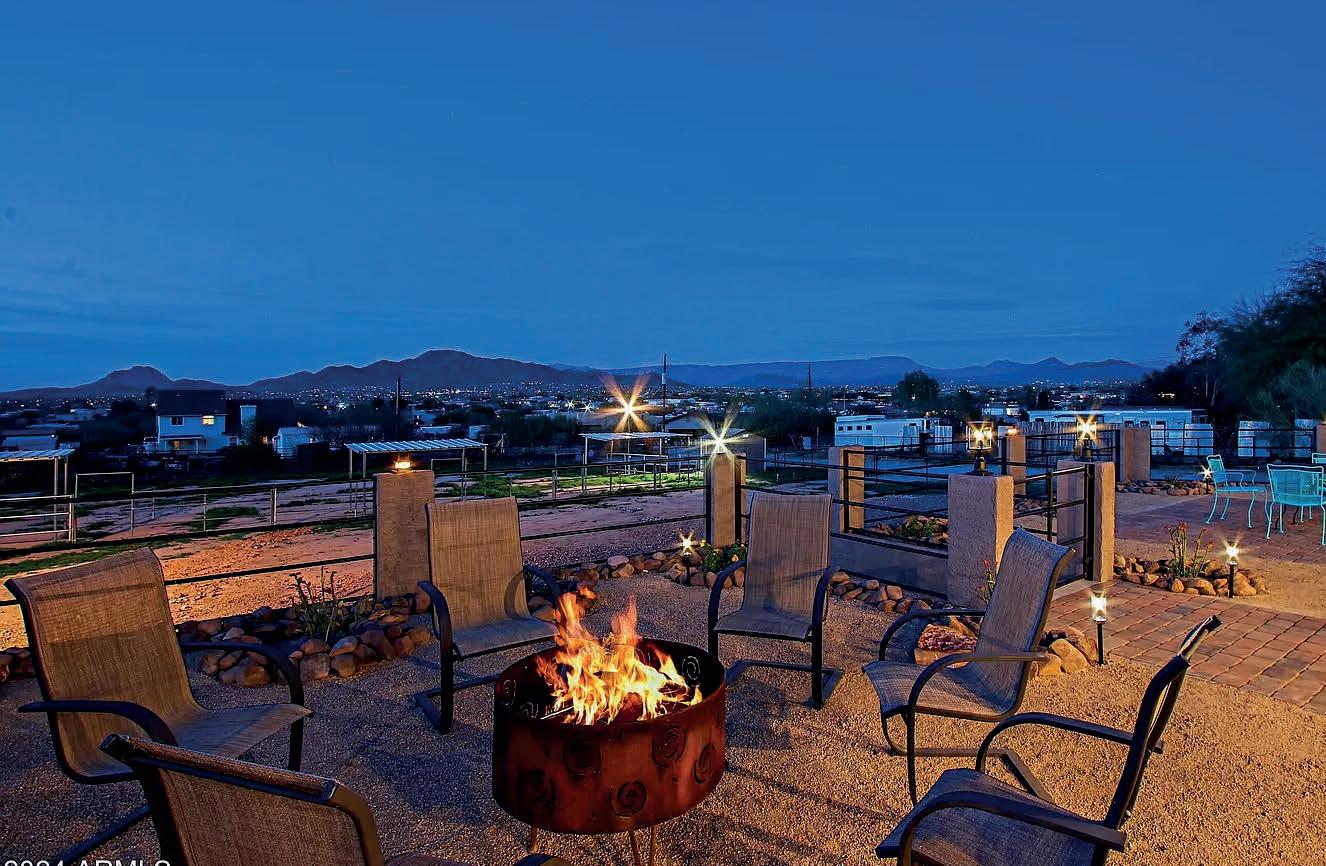 This magical 5-acre property sits high on the hill boasting epic mountain &/or City views in every direction. This high-quality luxury home was made to take in unobstructed mountain views from every window. The perfect Great Room-split bedroom floorplan- Kitchen open to the great room with massive wrap around island & ample cabinet/counter space. This gourmet kitchen includes a walk-in Pantry, granite counter tops, high-end stainless-steel appliances including double oven & built-in oversize refrigerator. The spacious owner’s suite with separate walk-in shower & tub & large walk-in closet. Secondary bedrooms are roomy & all have a private, full bathrooms. Attached guest studio (or home office) separate entrance, full bathroom, frig & private laundry & upgraded fixtures. This home has an enormous back patio with recessed lighting, propane patio heaters & fire tables. The views are endless & the Sunsets are EPIC. The garage can easily be converted to living space-complete with spray foam insulation, electrical & ceiling