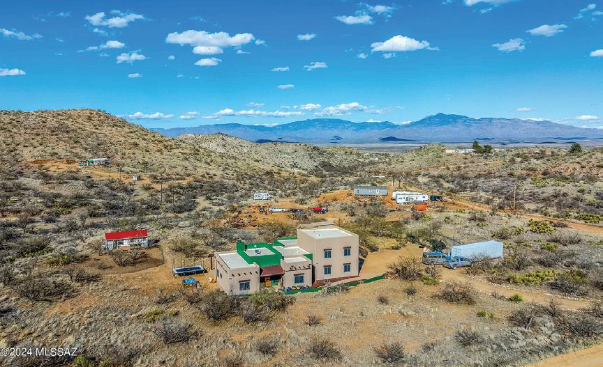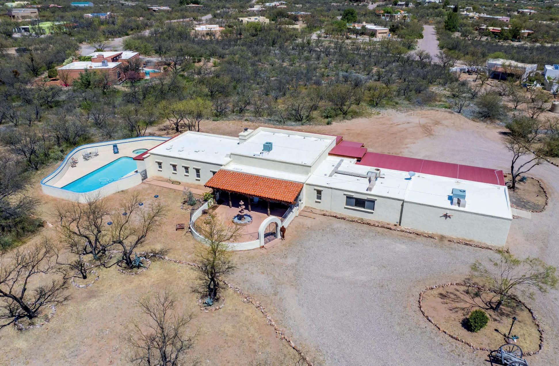 Welcome to this quiet west Tubac home only a few minutes from the Art famed town of Tubac. Situated on 3 lots this property gives you nearly 4 acres of flat useable land. This Ranch architecture home featuring 3 bedrooms and 3 bathrooms with a large multipurpose- game room and an unfinished large guest suit or future mother -in- law, large office/ den, there’s plenty of room for everyone to spread out. Enjoy spending time with the family in the very large Great room with 14’ ceilings and a wood burning fireplace that opens up to the kitchen, all perfect for entertaining guests. Storage space a plenty here! The home has beautiful travertine flooring throughout. Summer is just around the corner so come take a plunge or bask in the sun next to your very own pool. Swimming not your thing- just sit out on the covered back patio and enjoy the peace and quiet this property embodies with some great views no matter where you look.