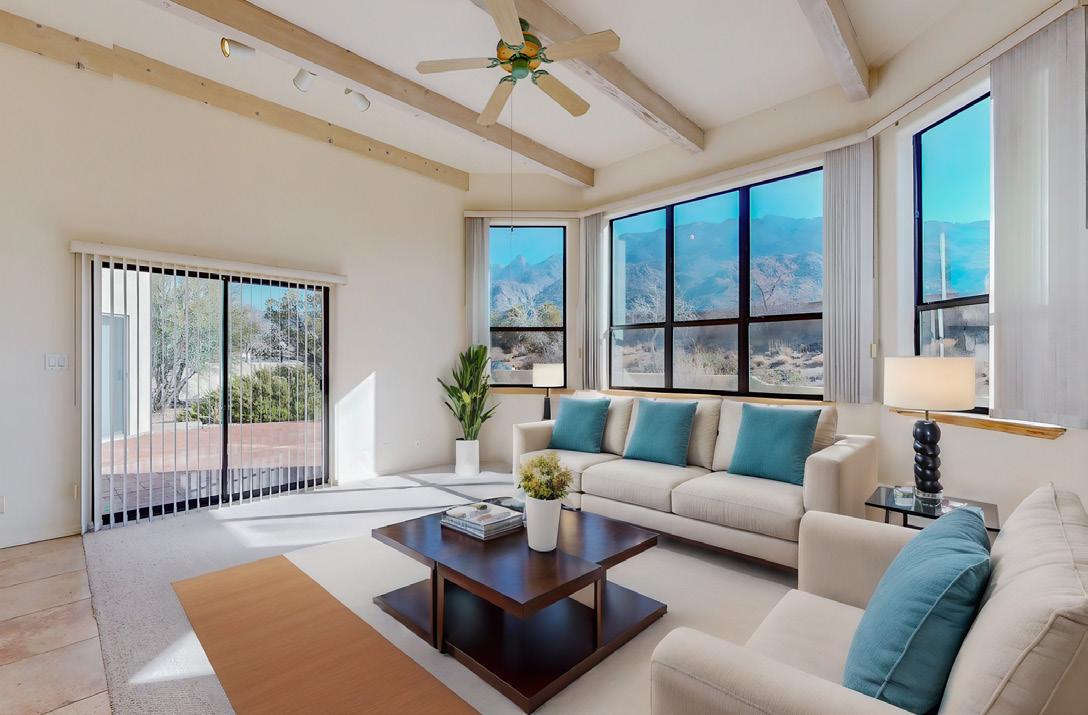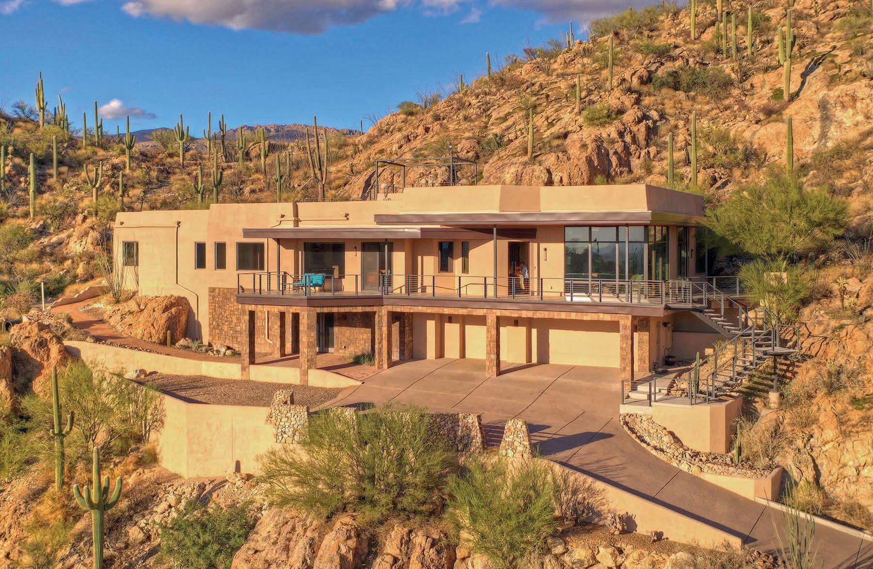 This exquisite modern desert Soloway Designed home offers a grand open living space, radiating warmth & sophistication, elevated hillside luxury living, mesmerizing views, all wrapped in the Sonoran Desert rock outcroppings. Perched perfectly atop a gentle rise, this property offers the advantage of being ‘elevated’ with the hawks, falcons, owls & perhaps eagles, providing unobstructed panoramic views and supreme privacy. Private yet entertaining outdoor living space a negative edge state of the art pool, high end negative edge Canadian Coast Spa Hottub, shaded ramada areas, secluded BBQ station area, linear fire pit, and a water feature that might put the Bellagio to shame. Let me introduce you to the Bazooka—the tallest, wildest, wettest waterfall pool misting system. A sure must see. Call Sandy Northcutt at 520.409.5301 to schedule a private showing.