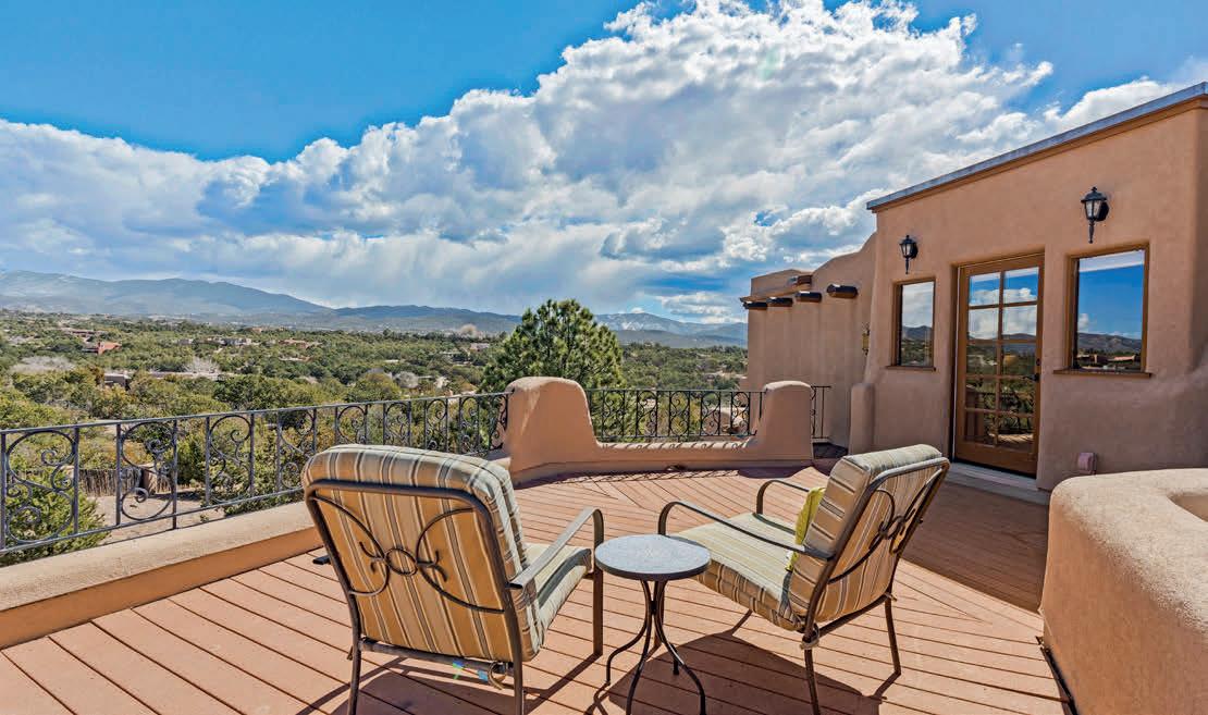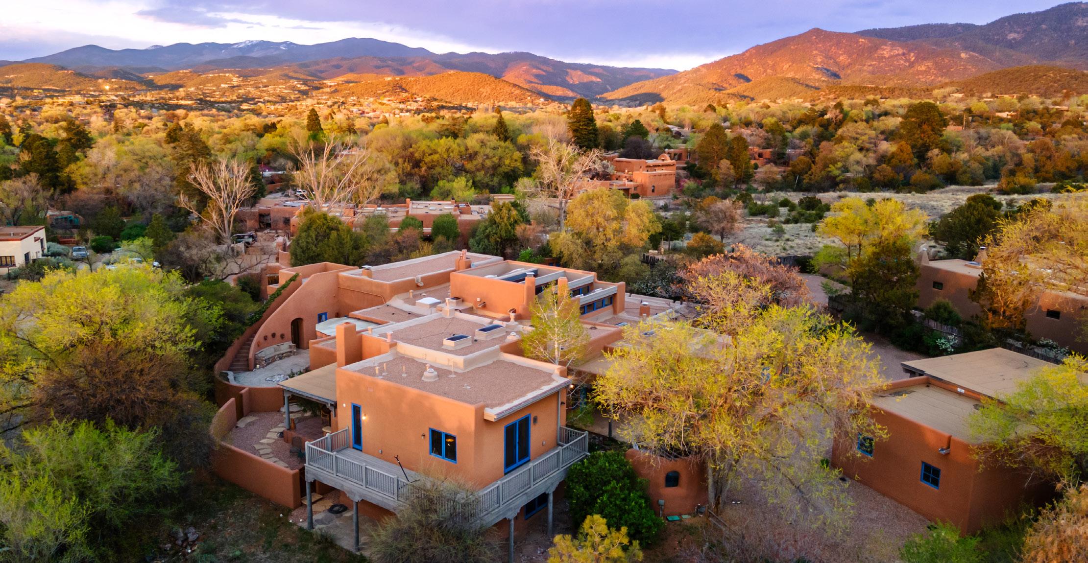 Gorgeous home with stunning mountain views, located in the rolling foothills, just 5 minutes from the downtown Santa Fe plaza! This unique 5,700+/- sq ft home is an architectural masterpiece, and offers 2 owner’s suites, each with a large walk-in closet/dressing area and private outdoor space, a spacious guest bedroom, a private office with a sitting area and full bathroom, a home gym, a 350 sq ft studio/crafts/game room, chef’s kitchen, and lots of outdoor patios and courtyards. The huge 3-car attached garage, central air-conditioning, and 6 fireplaces complete this stunning home, perfect for entertaining large groups, or small, intimate gatherings!