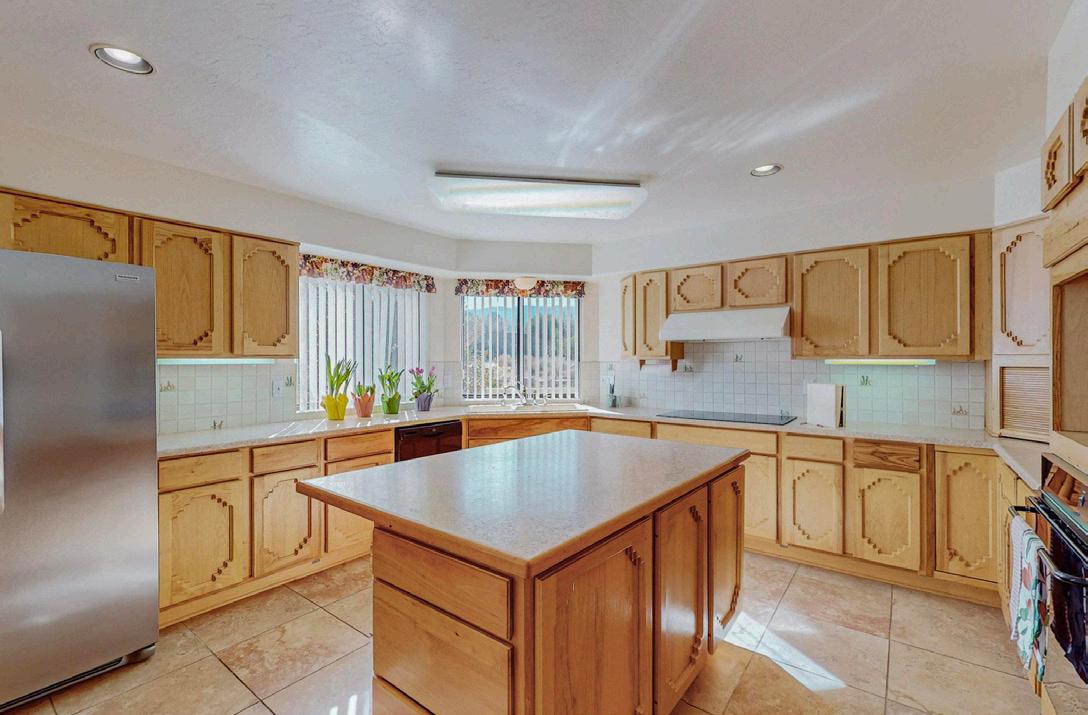 You can change many things but location is not one! This custom build has a unique split level floor-plan custom home that features hlgh ceilings, large kitchen with lots of storage, double sided fireplace awaits a new owner’s love. Captivating views of the Sandias highlight this lovely 4 BR, 3 BA home in a secluded NE Heights neighborhood with easy Tramway access. Watch the tram travel up & down the mountain while relaxing in your living room or enjoying a cup of coffee on your private courtyard. En-suite w/ jetted tub, separate shower and dual vanities. Low care landscaping with flowering bushes for the birds and butterflies. Garage plus RV bay w/epoxy floors - inside workshop/storage too. Minutes from foothills trails and all that entails. AND did I mention the views?