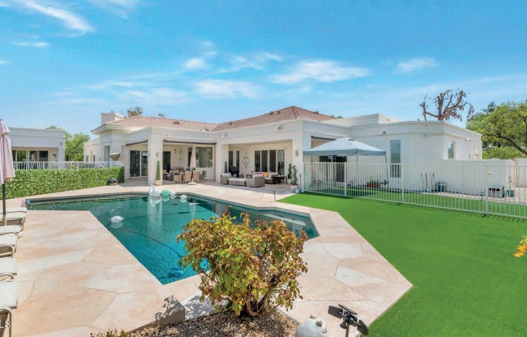 This newly built home offers unobstructed red rock views across the Tom Weiskopf designed golf course. Enjoy one-level living within an active community. Furnished with 3,500 sq ft, 3 beds, 4 baths. 200 HIDDEN MEADOW DRIVE | $6,000,000