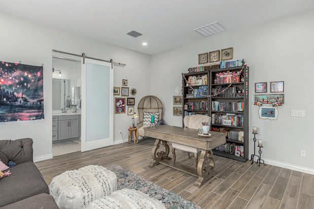 Introducing this gorgeous residence that epitomizes modern style & elegance! From its 2.5-car garage & beautiful stone accents to the tranquil garden fountain that graces the meticulously landscaped front yard. The fabulous interior is adorned w/high-end finishes & filled with natural light. Limestone tile flooring, custom designer Hunter Douglas shades, crown molding, surround sound, & high vaulted ceilings. You’ll love the spacious living room with a cozy fireplace that adds warmth & character. Butler pantry to formal dining area. The Chef’s dream kitchen is equipped w/granite counters, custom backsplash, a plethora of cabinets, SS appliances, walk in pantry, two prep islands and breakfast bar. Fully covered back patio with Gas BBQ Island and soothing waterfall pond for relaxation. Owner suite serves as a private retreat, complete w/outdoor access, plush carpet, a lavish ensuite comprised of two vessel sinks, soaking tub, glass-enclosed shower, & a walk-in closet. PLUS! The versatile den with Murphy Bed is ideal for work/relaxation. The backyard is a masterpiece, presenting a covered patio that invites alfresco enjoyment, a built-in BBQ & refrigerator for the grilling enthusiast, & a picturesque pond that adds a touch of serenity. Hot Tub/Spa is also available to purchase. Don’t wait any longer! Act now!