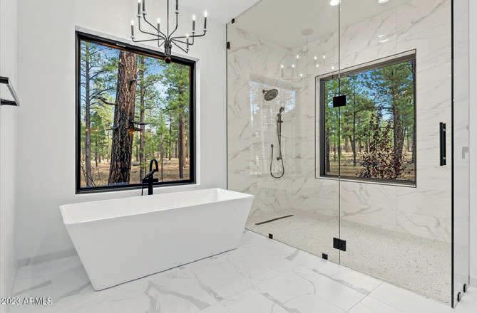 Professionally Designed and recently completed custom home in the Beautiful White Mountains has everything one would want and need. This singlelevel, dream home, is brand new, never lived in and prepared for the most discerning of owners. Owner’s suite bedroom with two large double vanities and massive windows for full view exposure, split floor plan, additional 3 bedrooms, Each has its own Bath and spacious closets, Multiple private patios and custom panel ceilings and beams in Bedrooms and Living spaces. The wide open great room has soaring, vaulted ceilings, and a Stunning Custom tiled gas fireplace. Enjoy abundant light afforded by the full wall of telescoping doors which open to the outside living area featuring a beautiful wrap around patios. The gourmet kitchen has all the expected upgraded features; tastefully chosen counters, Oversized builtin fridge/freezer and wine/beverage unit, 6-burner gas range, multiple ovens, custom cabinets and a sprawling center island with extended seating option. An adjacent butler’s pantry affords ample storage for food and your holiday dishes and serve ware, pet items and everything else that deserves its own tidy place. All flooring that is not tile in the home is real hardwood. There is a spectacular laundry/utility room with extensive customized cabinetry, a sink, folding counters, hanging rods and windows for plenty of sunlight. The finished, extra wide and deep 3-car garage has individual car doors and a separate room. From the garage, you enter the home through a charming, customized “mud-room” space with built in storage and drop zone area. The massive long paver driveway leads you to the Custom Landscaped Front yard design including; trees (pines and deciduous) shrubs, flowers and boulders, all serviced by drip irrigation. All the interior and exterior lighting is highly upgraded. All interior hardware, faucets, and light switches are upgraded as well. Lot feels very private and luxurious as the home sits well off the street and surrounding hundreds of Pine trees. Please feel free to reach out for blueprints of home Floor Plan for more details on Layout.