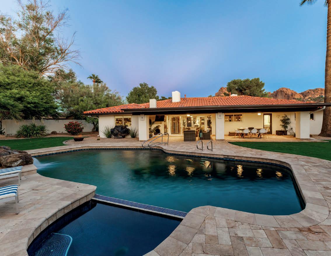 Savor this pristine home, totally remodeled in 2019-2021, on the 12th tee box of the Moon Valley Country Club golf course! Soaring 12 foot ceilings and porcelain wood-like flooring welcome you as you enter. The chef’s kitchen boasts a huge island, quartz countertops, custom cabinetry, coffee bar, and high-end appliances from Viking, Bosch, Profile and more. The massive open floor plan gives you room to reflect or to entertain in style. 5 bedrooms and 5 baths allow everyone a place to call their own. The building feels fresh with new windows & doors, 3 newer ac units, a new roof (2019) and a newer electrical panel. From the outside you notice the unique cedar garage door, resort style backyard oasis with 4 courtyards, covered patio, and the PebbleTec pool that looks right on to the golf course. Lush landscaping includes many mature trees and several varieties of fruit trees. All this with the convenience of being near golf, hiking, downtown events, shopping and freeways!