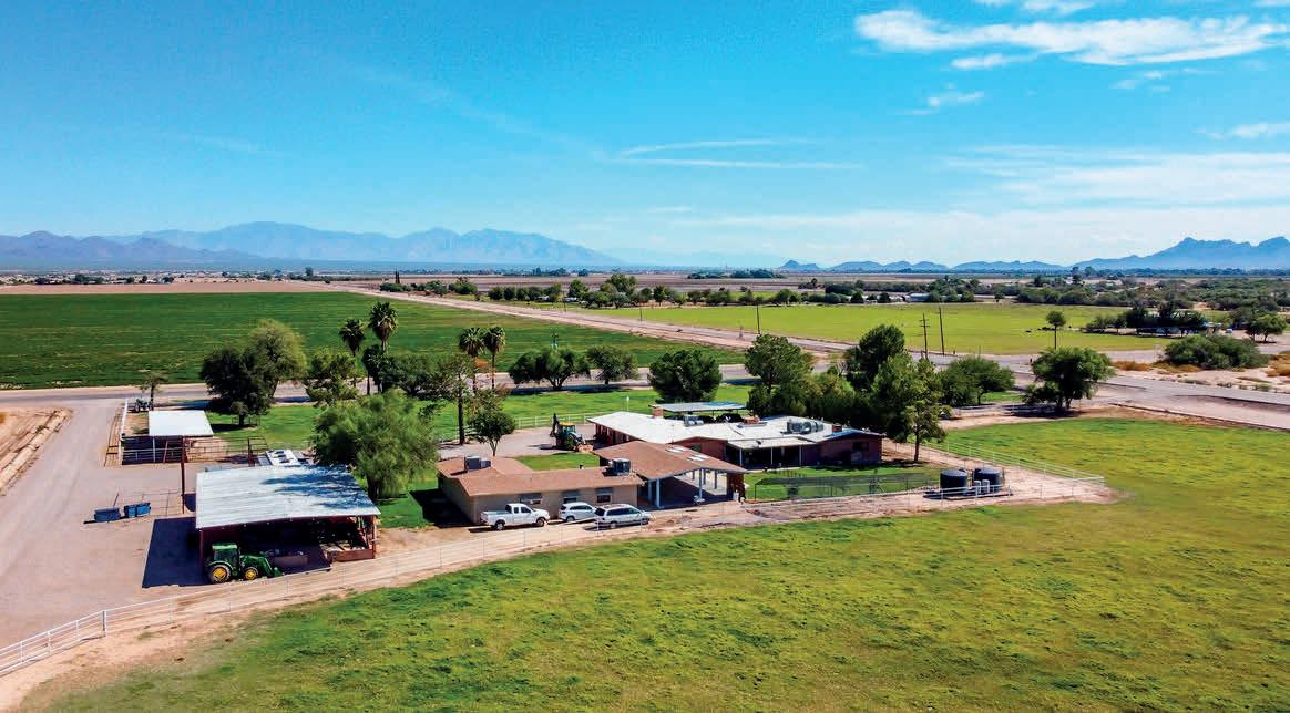 50 Acre Farm/Ranch with 330’x 150’ covered roping arena/hay shed, main house, guest house (w/2 bedrooms, 1 bath & large office area), several storage units, 6 fenced pastures, 11 corrals, 2 new upgraded 2,500 gallon wells (1 year ago), 2 septics (house & guest house), crop irrigation canals, irrigation grandfathered groundwater rights, 80’x60’ & 60’x45’ shop areas, 24’x30’ RV storage area. Main ranch house has two 60 gal hot water tanks. Recently erected very large outdoor ramada w/full electric—between ranch house & guest house. Great for parties, receptions, sports watching, dances, etc. Superb location off of I-10 and Marana Rd. Rare opportunity to own this spectacular property.