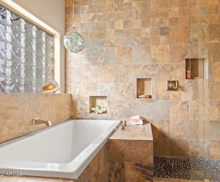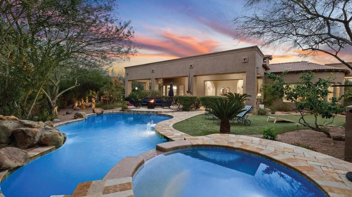 Live in luxury & comfort in North Scottsdale’s Saguaro Estates on 1.4 acres. A true gem, perfect for entertaining and/or fantastic family living! 5 beds, 5.5 baths with a spacious living & dining room, executive office, fully equipped theater. Also, featuring a gourmet eat-in kitchen with Wolf/ Subzero appliances, large island and breakfast bar that opens up to a fantastic family room with a fireplace, wet bar & wine room. The gorgeous split master has a wet bar, sitting area, two-way fireplace & private patio. 4 wonderful split guest bedrooms open up to a fabulous, large bonus/ flex room. The gorgeous backyard oasis enjoys a pool, waterfall, large patio, firepit & a covered patio with a gas fireplace, TV, bar, dining & huge outdoor kitchen. The 3-car garage has an EV charging station & epoxy floor. Smart home/Control 4 technology completes this home. This dream home has been meticulously maintained & is in perfect, turn-key condition, ready for you to move in now. Most of the gorgeous furnishings are available for purchase. Come home to where comfort, fabulous living and luxury all meet.