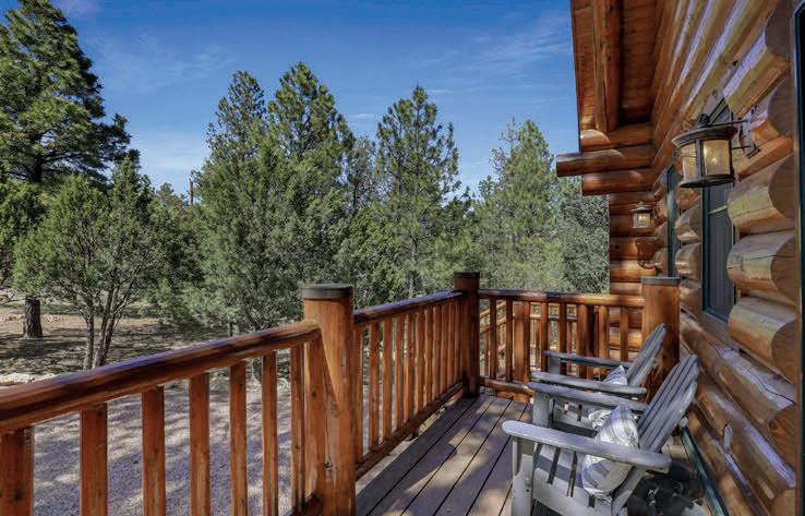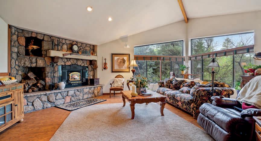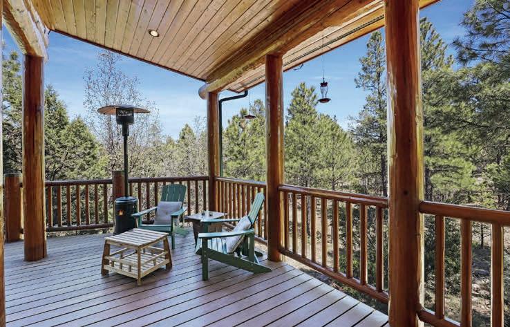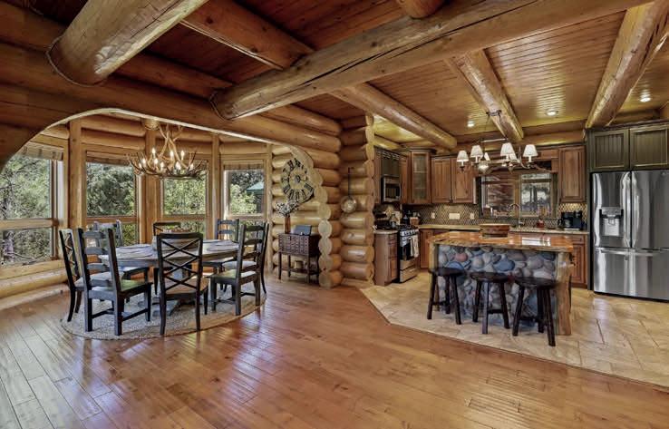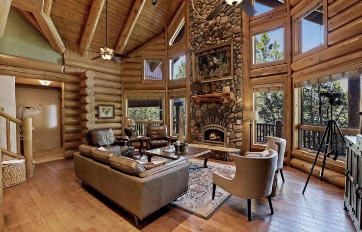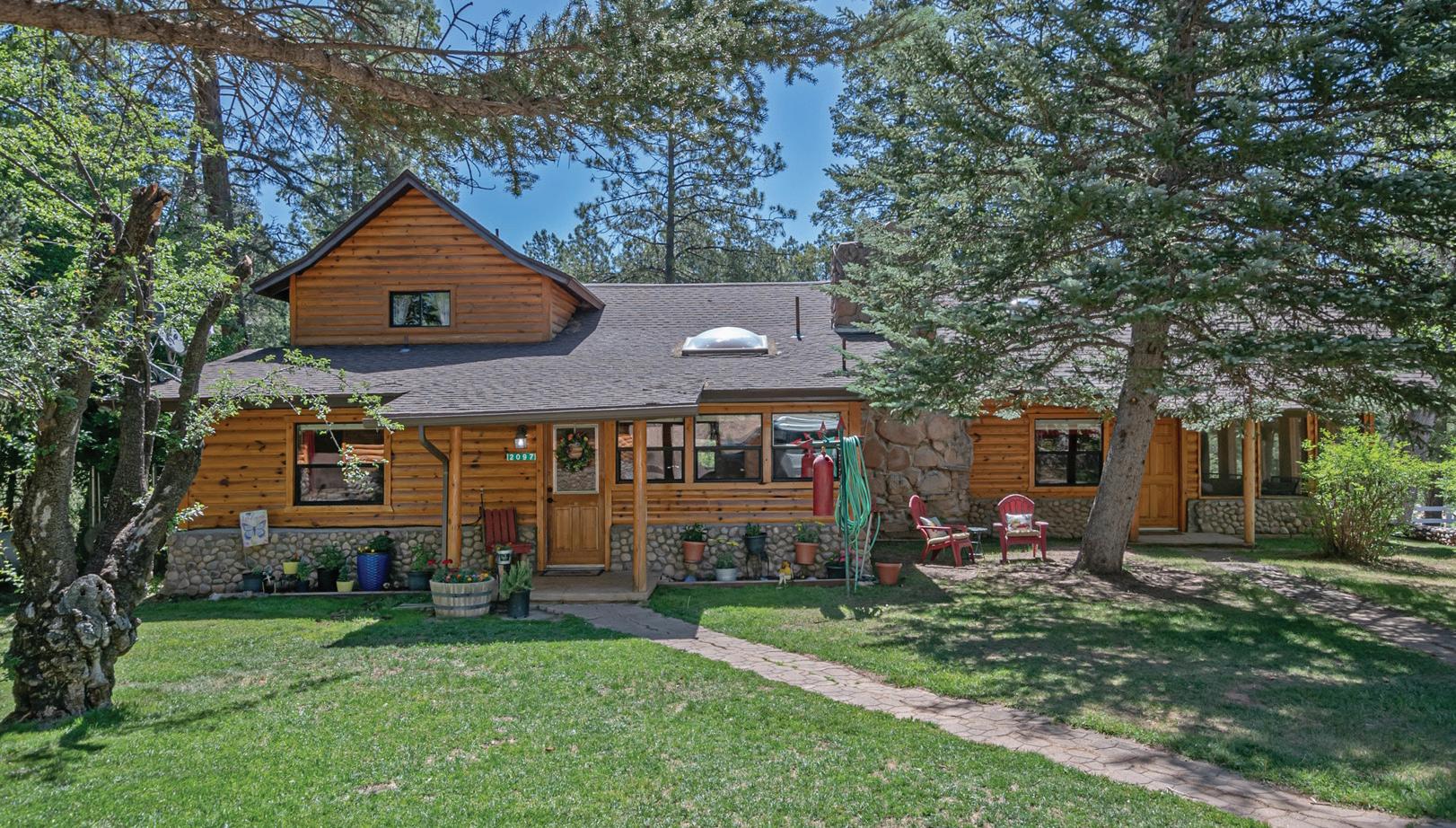 This expertly handcrafted log cabin was built with only the finest fixtures and finishes and sits in the forest on a large lot full of towering ponderosa pines!! The inside features an open floor plan with vaulted tongue and groove ceilings with log rafters along with wood and stone features throughout. Expansive windows give a bright and airy feel to the open concept great room which features a gigantic custom stone fireplace. The well-appointed gourmet kitchen features a custom center island made of juniper wood with a breakfast bar for informal dining, ample counter and cabinet space, solid hickory cabinets, and a roomy walk-in pantry. The formal dining area is encased in windows and adorned with a rustic deer antler chandelier. The impressive main floor master suite features gorgeous log beams with access to a private deck to take in the cool mountain air. 5