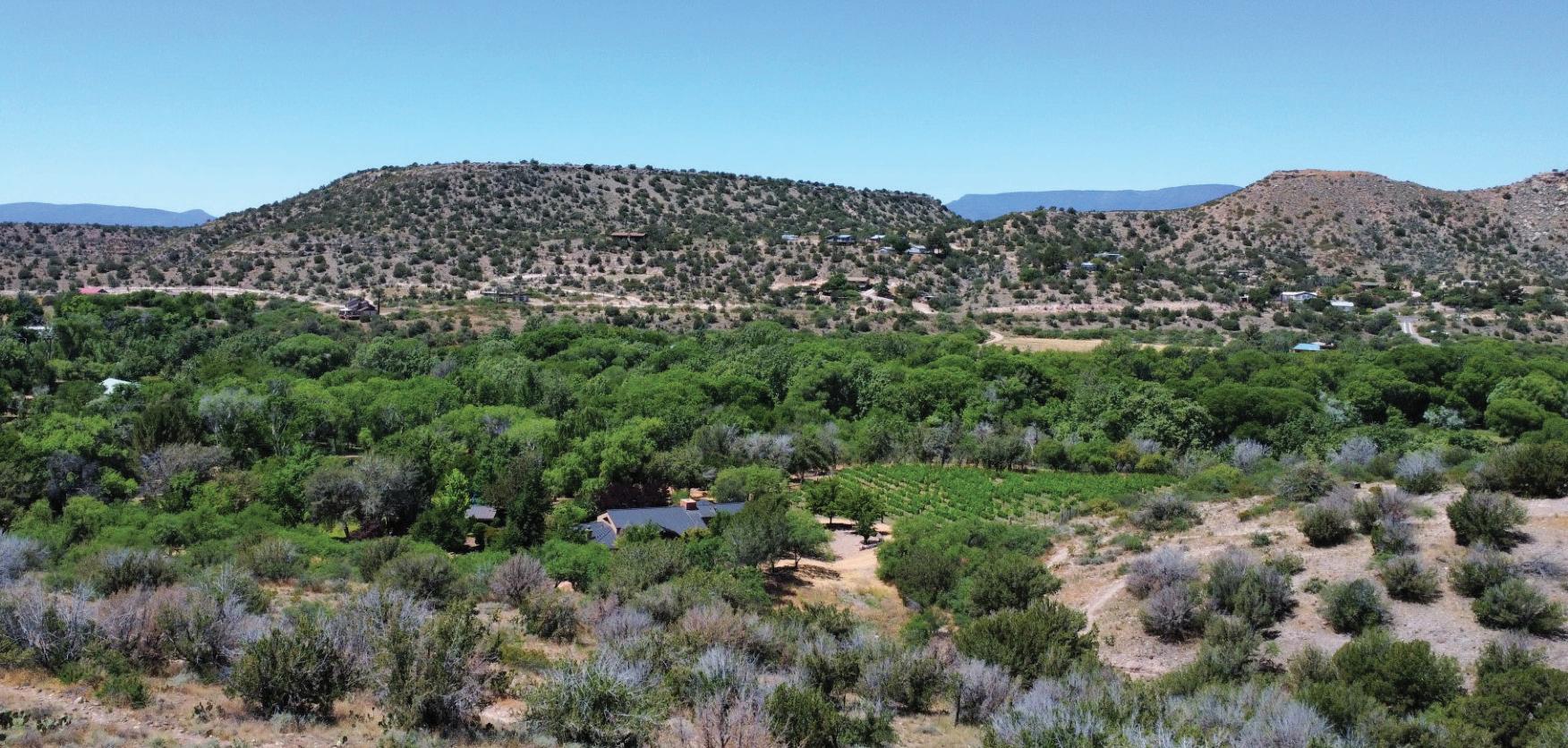 Offered at $2,100,000 Historic Tesuque property with abundant water rights, a New Mexico dream! Experience what used to be the community hub of Tesuque Village, home to the post office, market, small cottage motel, service station and residence of the postmistress and proprietor. All businesses have long since relocated. The main structure was converted into a private home and the motel into a casita with 2 independent guest apartments, all on 2 lots totaling 1.8 acres. The 3 bedrooms, 2 baths double adobe main home features 2 kiva fireplaces in the main living room with a third stone fireplace in the primary bedroom. Included are unique details such as a dugout for mechanics beneath the garage floor, once the Sinclair Service Station, and an outdoor bar with built-in grill. The guest apartments were previously the Modern Cottage Court Motel. The first has potential for 2 bedrooms or a bedroom and flex space, 1 bath, a full kitchen, 2 fireplaces, an enclosed parking space, and beautiful stonework. The second is a charming studio with a kitchenette and fireplace. This home has incredible gardens, a tree canopy and mature fruit trees. The separate lot is a conservation easement offering additional space to enjoy. Experience this one-of-a-kind landmark today! 172ATesuqueVillage.BethCaldarello.com