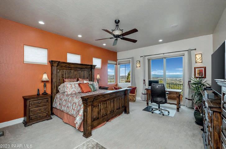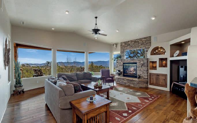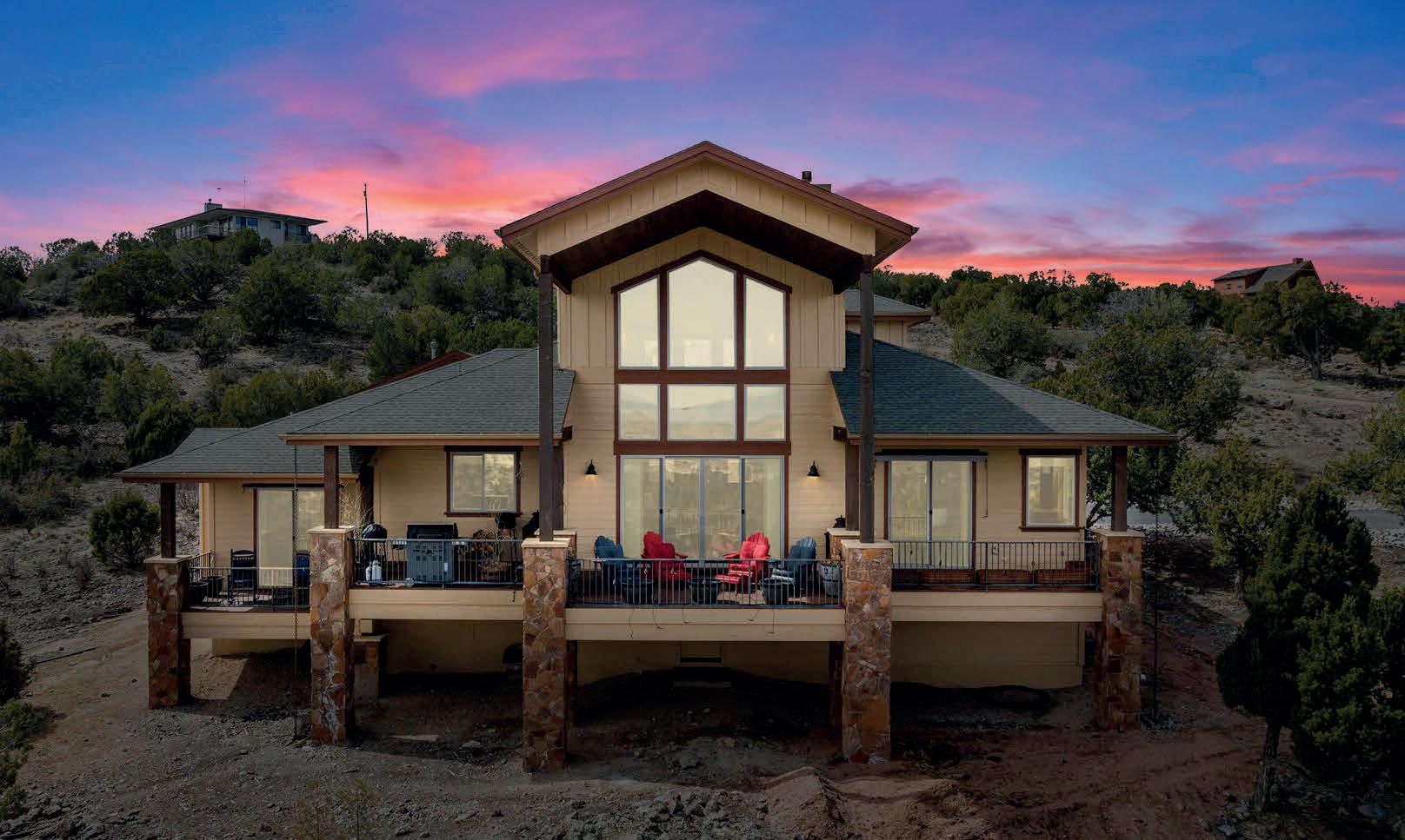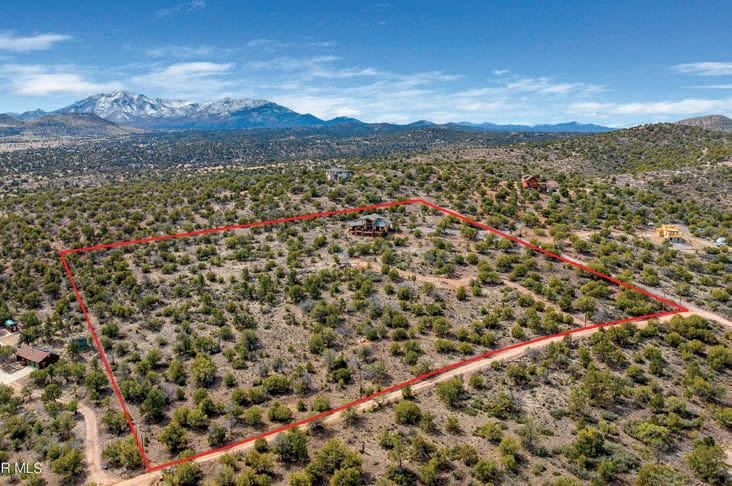 Your own piece of heaven situated on a private 10+ acres parcel with views all the way to Sycamore Canyon and the San Francisco Peaks. Sloping lot with enough flat land for horses, a corral and RV facilities. Entertain guests in front of a beautiful stone fireplace and floor to ceiling windows. Gourmet kitchen and bar area will be the envy of friends. Family room in loft area would be great for children, grandchildren or office. Main floor living. Hardie board siding construction. This could be your forever home. PLUS, THIS LOT CAN BE SUBDIVIDED INTO TWO 5 ACRE PARCELS. PERFECT FOR GUESTHOUSE or INVESTMENT. LOWER PARCEL EVEN HAS ITS OWN WELL.
