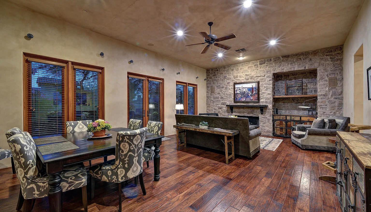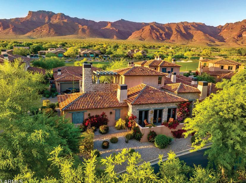 TURNKEY FURNISHED. Tuscan beauty in lovely Golden Eagle Village. 3 bedrooms/3 baths/den, 4 fireplaces & 3 patios set the stage for perfect lock & leave living in this popular private Lyle Anderson Community, w/36 holes of Nicklaus-designed golf, in Arizona’s best kept secret—Gold Canyon. Upgraded newer appliances, granite counters, stone wall accents, 8’ solid core doors, high ceilings t/o, upstairs sunset patio w/ mountain views, private master patio w/ fireplace, wood/tile flooring, lush landscaping, surround sound t/o, tasteful decor. 24/7 guard. Golf club membership under separate agreement. Country club past host to nationally televised golf events. Only one traffic light separates you from the Atlantic and Pacific oceans. Where else? Nowhere else but here!