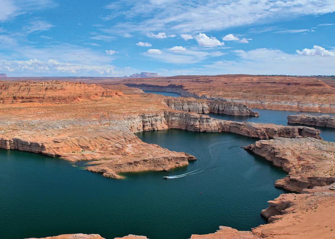 Lake Powell, situated along Arizona’s border with Utah, attracts more than two million people annually. Surrounded by rusty red canyons, high-end resorts, and hiking trails, visitors enjoy swimming, fishing, and boating in and on this scenic waterway.