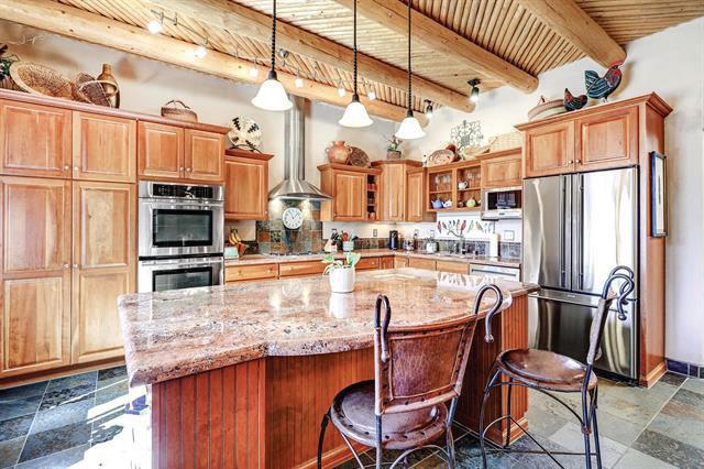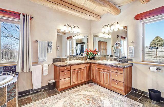 Dreaming of the perfect house in the perfect location? Well, here you are! Located in Des Montes, half way between TSV and the Town of Taos, this beautiful 3 bedroom 3 bath 3,936 square foot home on just under an acre has it all! Timeless finishes including a classic earth plaster finish made of mud and straw on the interior walls, Brazilian slate floors, granite countertops, cherry cabinets and beautiful touches everywhere you turn. Just off the kitchen is an enclosed sunroom that is the perfect spot for enjoying your morning coffee, or a lovely place to cozy up by the fire in the evenings. Everyone will love watching movies or the big game in the media room, which also has a full bar with a wine chiller and small fridge. The outdoor spaces are perfect for enjoying the beautiful views, star gazing from the hot tub and taking in the cool evening summer breezes. The 3 car garage has plenty of room for storage and workspace and even a RV electrical hook up out front. There also is a RV storage that is equipped with electricity. This is one you’ve got to see to believe!