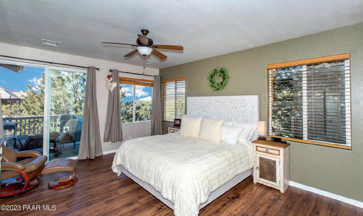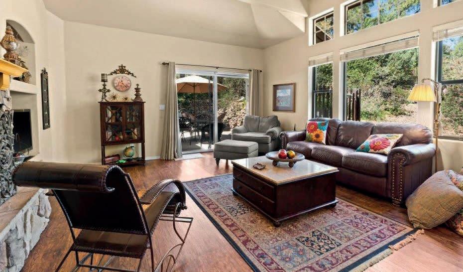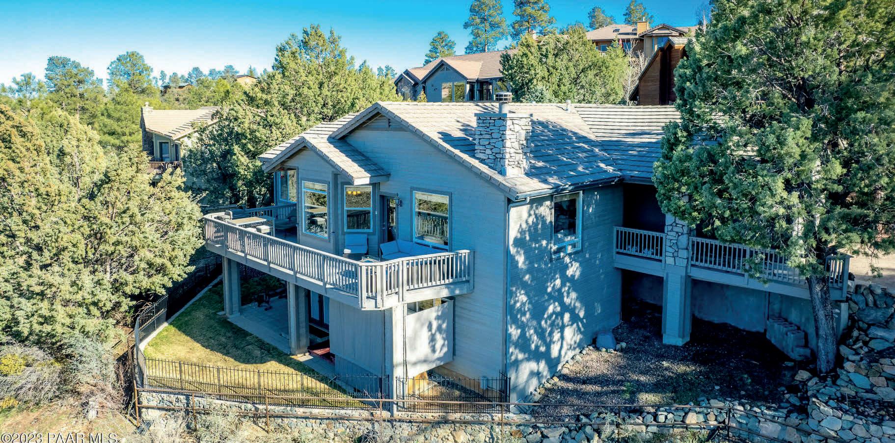 LUXURY HOME - situated in the tall pines community of Timber Ridge. Beautiful custom home that incorporated the lot elevations and took advantage of the trees for ultimate privacy. Four bedrooms, 3,000 sq ft home provides plenty of room for your family and guests with all the finest in craftsmanship in all the living space including the dining, family, living room and a spacious eat in kitchen. Kitchen had appliances elevated to stainless steel and includes natural gas cooktop with electric, convection oven, dishwasher, disposal, upgraded granite kitchen counter tops and center island. Convenient laundry room off the kitchen. Gas/wood burning fireplace in family room, gas fireplaces in living room and primary bedroom that adds a welcome warmth on cool nights. Lower level bedroom has it’s private 3/4 bathroom with double sinks and could easily be used as a mother-law suite. The primary suite,with walk through closet for extended wardrobes, is an unexpected surprise. A spacious full bath has a separate tiled walk-in shower and roomy jacuzzi tub, double sinks and private toilet room. The balcony is enjoyed for morning sunrises and bird watching. The two other bedrooms are situated in a fashion as to be separate from the primary bedroom and share a full bath. A three car garage, of course, is added value to this listing and the outdoor entertaining is surrounded by a park-like setting on an extended lot that was purchased by the owner to enhance their privacy. Guests can gather around the gas fire pit and enjoy the natural surroundings including a deer passing by now and then. Timber Ridge offers tennis courts, indoor and outdoor swimming pools and a clubhouse for all residents to enjoy. You’re only minutes away from the activity of downtown Prescott but steps away from the whispering pines welcoming you home. Schedule your private showing today. It’s one of Prescott’s hidden jewels and homes rarely come on the market. This home is special in every way and you will agree!