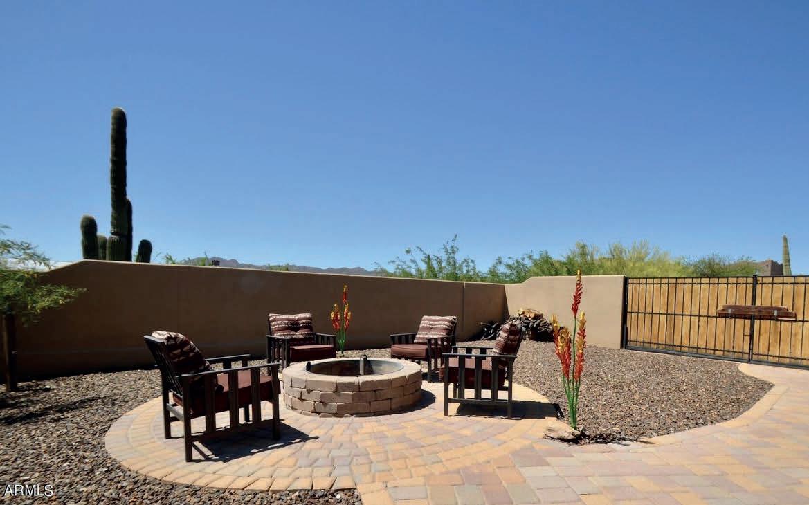 MOUNTAIN VIEWS-quality built Maracay home in the desirable first neighborhood of Victory! Popular Traveler floorplan full of upgrades on quiet street. Outdoor living front courtyard welcomes you thru entry door to soaring rotunda * Neutral warm decorator tones throughout * Great Room w/beautiful custom stone wall w/ fireplace & floating shelves * Oversize island in chef’s kitchen, upgrade cabs & granite, RO system, walk-in pantry, large dining area * Expansive Master BR w/new wood flooring, elegant Master Bath & enlarged Master closet * Large guest BR w/ensuite bath * Office w/ Murphy bed * Extra length garage w/ sink, storage & epoxy flooring*Serene view from covered patio * Extended paver patio includes firepit to relax & enjoy the views! Immaculate home from original owners.