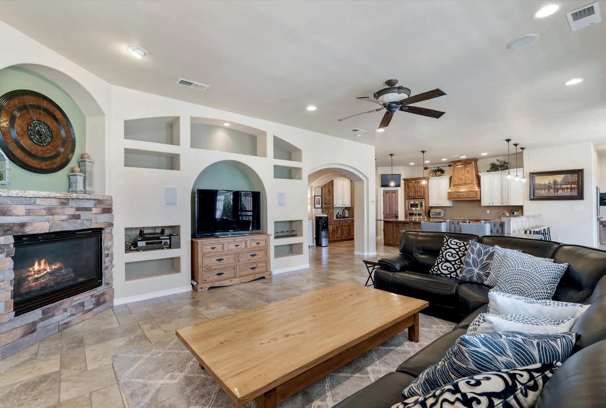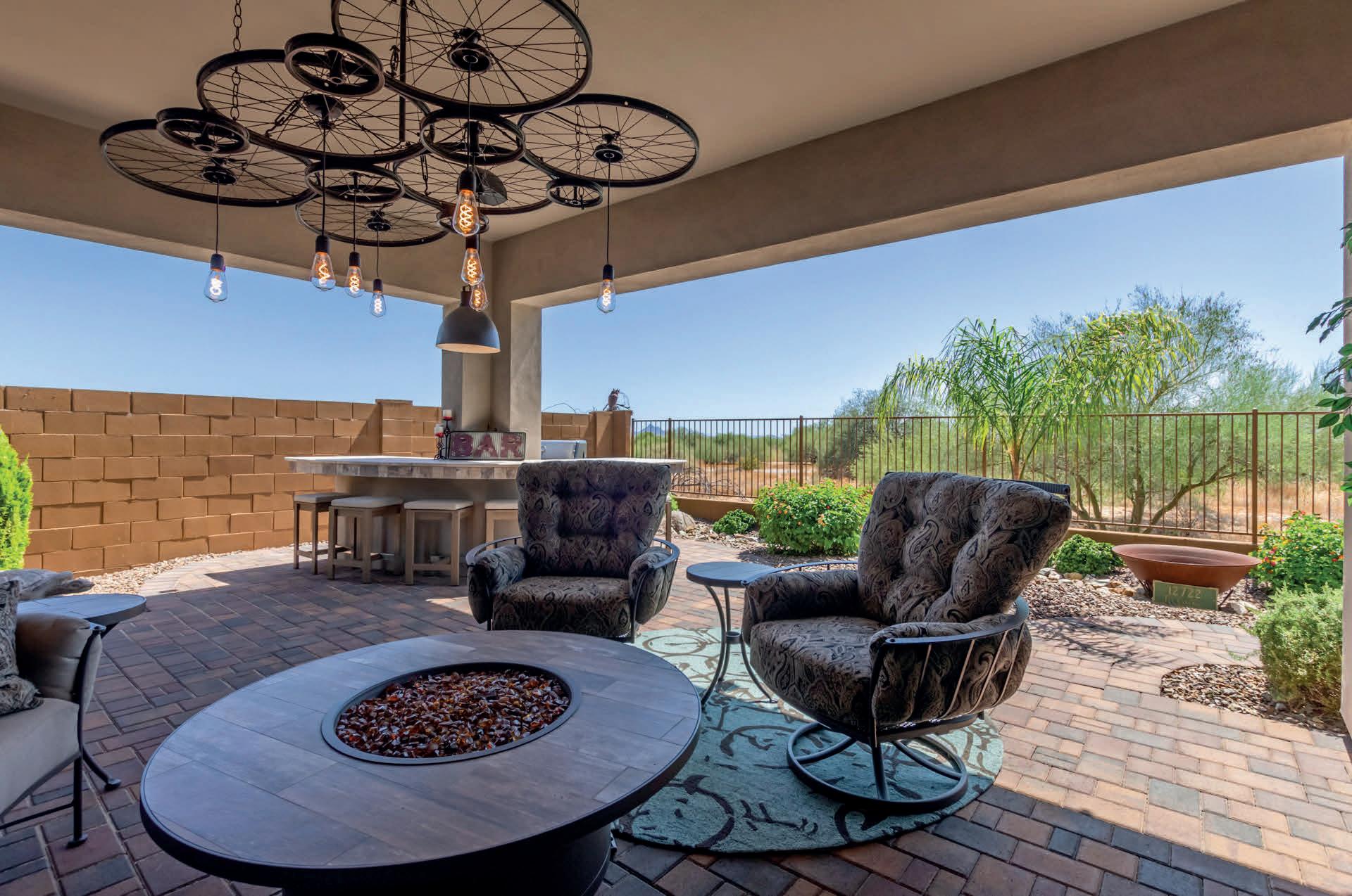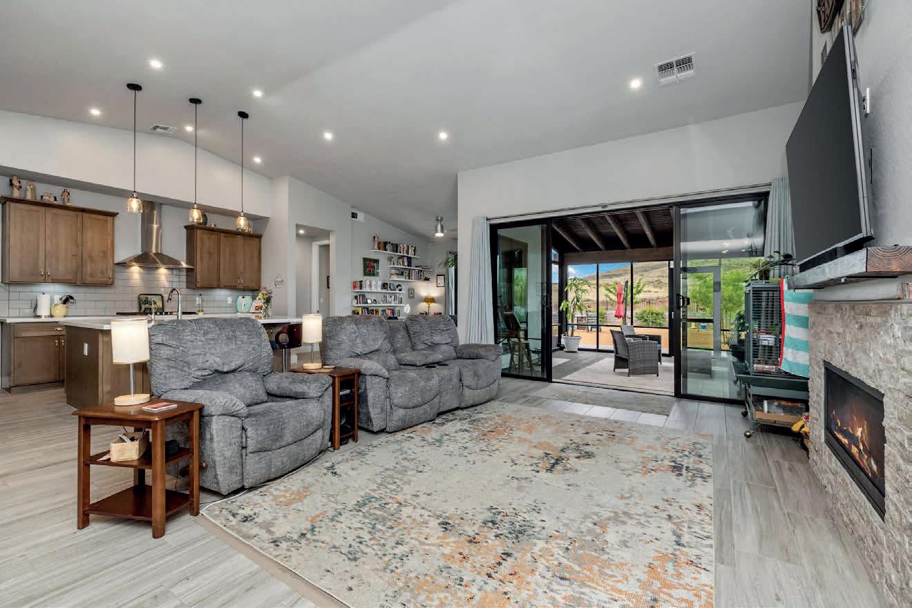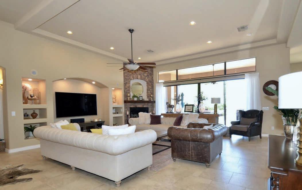 Highly upgraded ENHANCED Summit by Lennar w/open space to side & back AND the MOUNTAIN VIEWS! Newer neutral interior paint accentuates great living spaces, including XL great room; split Master BR (w/view to mountains!) has new carpet, GORGEOUS barn door to owner’s bath, convenient walkthru closet to laundry (W/D included); kitchen w/upgrade appliances & even faucet! open to great room & dining & two sliders to outdoor living (views from the kitchen sink!); Den w doors; 4’’ Plantation shutters thruout. AND AMAZING patio spaces with pavers, artificial turf AND an impressive CUSTOM Kokomo grill kitchen with TV! Two covered patio spaces, fire pit, AND auto Havana sun shades. The garage has epoxy and storage cabs, two car & extended bay, room for golf cart.