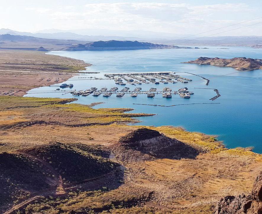 Lake Mead, a large reservoir along Arizona’s northern border with Nevada, was created by the construction of