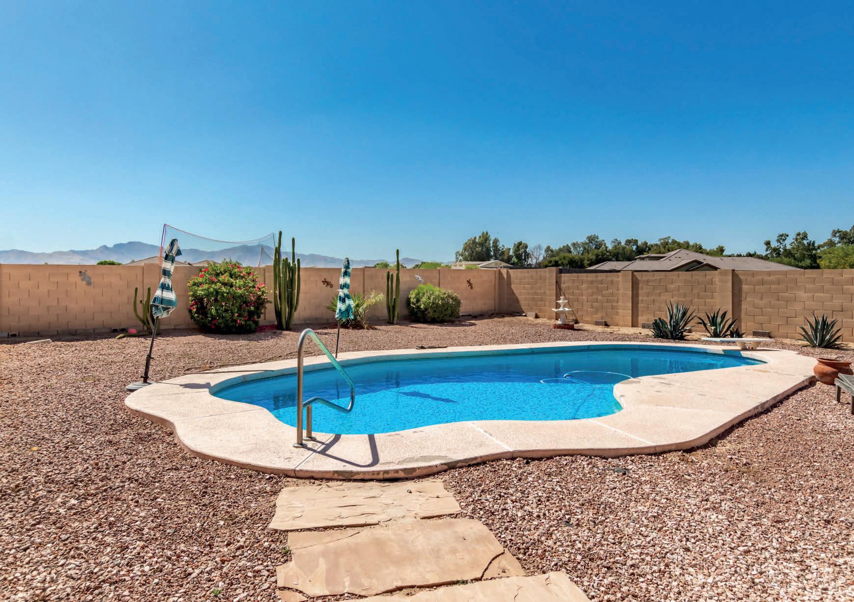 Exceptionally maintained and upgraded ranch style home in SanTan Valley nestled on a large corner lot with 40x 50 shop and 3 car garage. This spacious home boasts high ceilings and entertainers layout. Enjoy the fabulous south facing back yard with fruit trees and a custom pebble tec salt water lap pool.