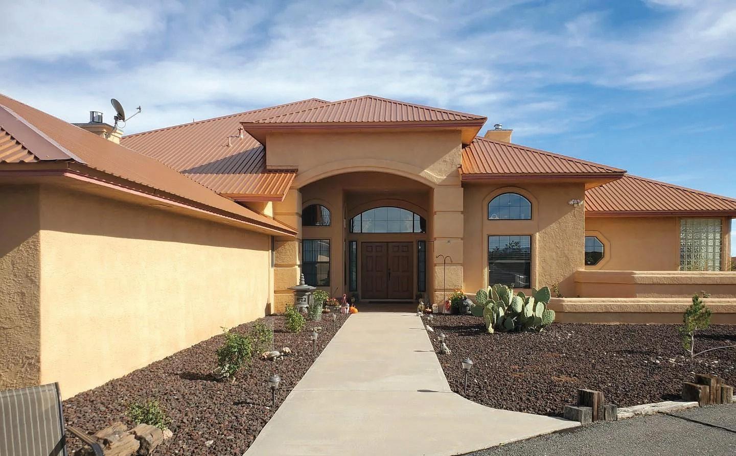 Extraordinary custom steel built home sits on 18.68 acres with panoramic mountain views. Walk into a open floor plan with tile flooring throughout, two living rooms, custom built in shelving, and custom kitchen with knotty cabinetry, electric stove range with gas hookup, and large pantry closet. Main suite with walk-in closet, garden tub and walk in shower. Spacious guest bedrooms and guest bathroom with roll-in handicap accessible shower. Sit out and enjoy the scenery in the covered patio or front porch. Spacious 2-car garage with shelving. Acreage is all useable land to add barns, horse corrals, and includes a 2nd septic tank for a 2nd home. A must see to appreciate the features this property has to offer.