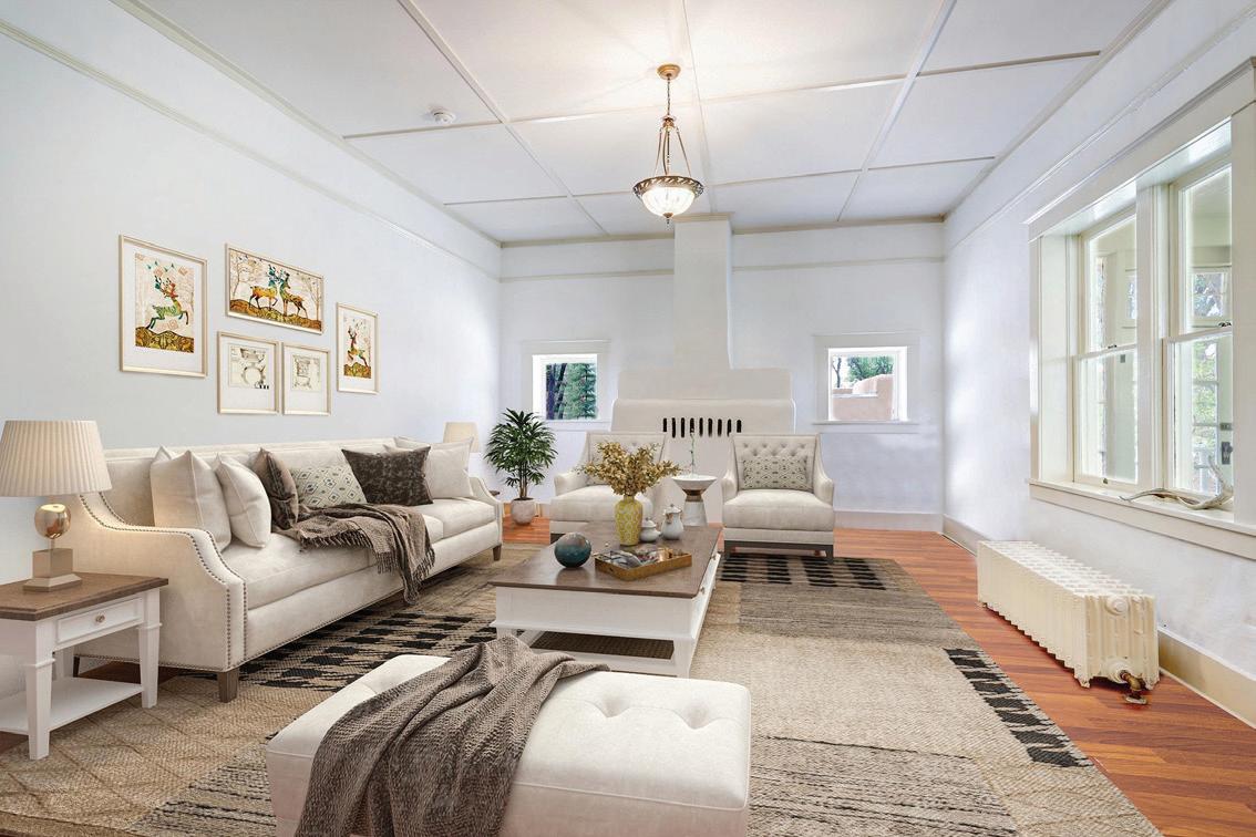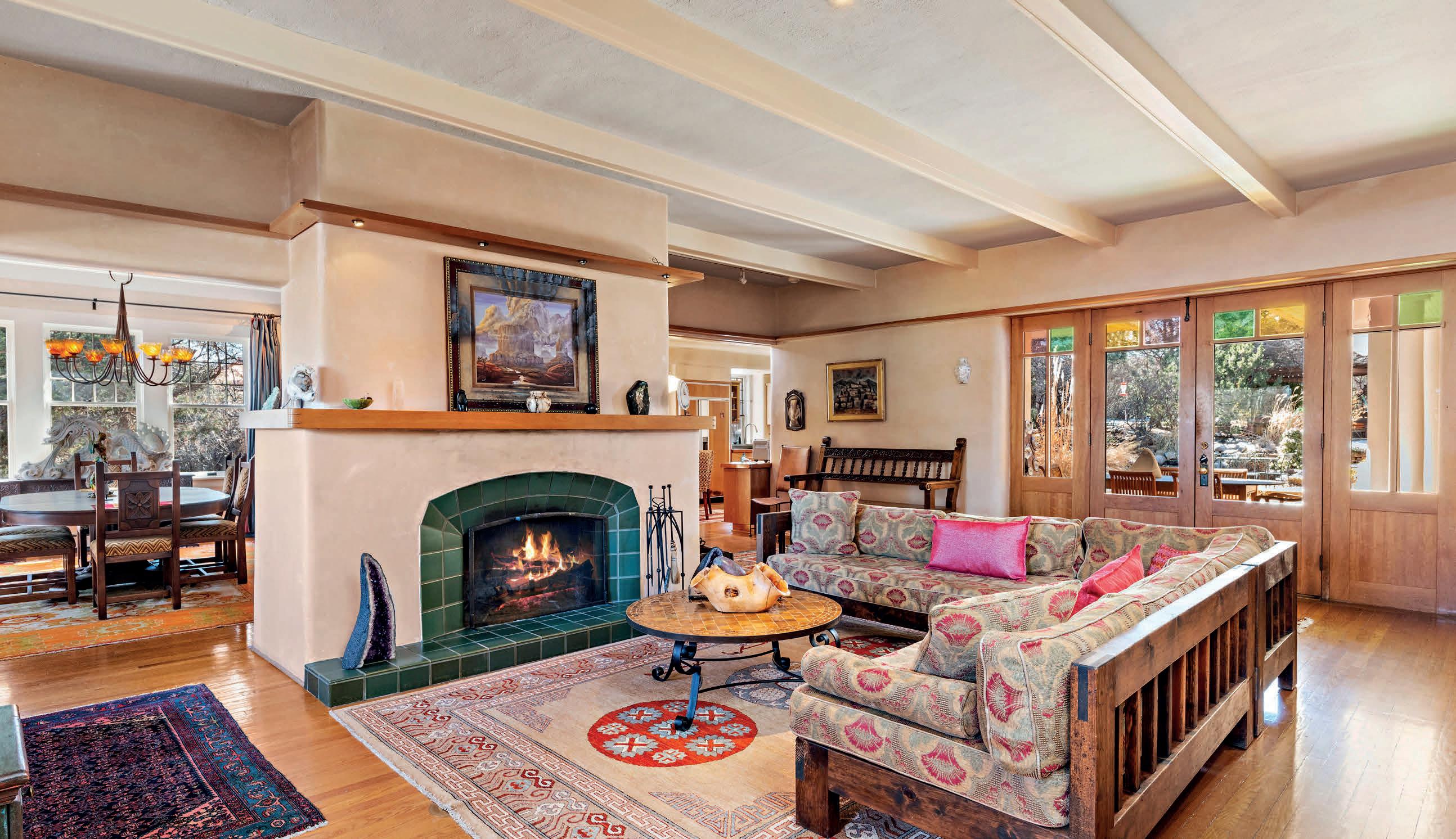Built in 1910, The Francis Cushman Wilson House, recognized as an exceptional historic property by the Historic Santa Fe Foundation, is a rare example of a Craftsman influenced Prairie style home. Located on a lush, landscaped acre in the South Capital neighborhood of Santa Fe, this two-level home has been maintained and updated over the years but retains it’s original character and charm. The home is on city water and has a private recently fully refurbished irrigation well and professional level greenhouse equipped with power, water, and heat allowing the avid gardener the potential to grow year round. Many wonderfully landscaped areas include an in ground hot tub, outdoor dining area with fireplace, and secluded shady nooks for sitting- all on drip irrigation. The property is fully fenced and gated and contains a separate two-car garage and original stone ‘shed’ for extra storage. Offered at $3,300,000