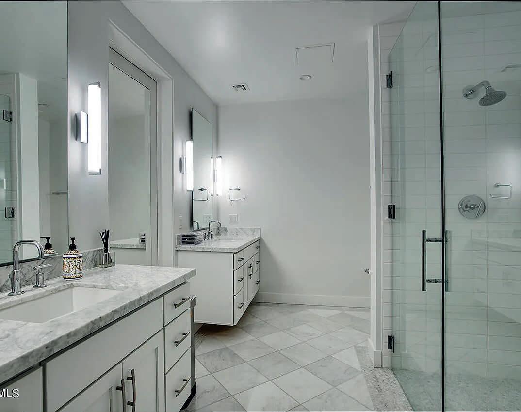 Thomas and Edna walked in the door knowing exactly what they had in mind when it came to setting the new standard for a contemporary home in Las Cruces. With a unique lot already in hand and a draft concept to work off of, we collaborated extensively to maximize the efficient use of the buildable square footage of the lot while taking advantage of the views that were readily available. After finalizing the footprint, we emphasized capturing as much natural light as possible with the dramatic use of storefront glass, additional transom windows, and sliding glass door systems. Thomas’s European influences stand out with the sleek ceramic tiles, stylish acrylic cabinets, stunning quartz countertops, and bold chrome fixtures and accents. Their vision was truly magazine-worthy and we’re extremely proud they let us be a part of the Nessel Project.