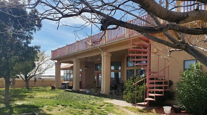 Stunning, Rare and Exceptional 7-bedroom, 4.5-bath, 3-level modern log home on 359 fenced acres with a few fruit trees and a pond on gently rolling Southwestern terrain. Two fantastic wells: one rated at 33 gpm; the other rated at 55 gpm! Two large front & back covered porches. The 28-ft long kitchen has a huge central island, and flanks the breathtaking 2-story Great Room and Sunroom. Down the hall are 2 bedrooms & full bath, and last, the Primary Suite: 3 rooms extending the full width of the home, with a gracious, large Bedroom, a large Dressing/Sitting Room, and 3/4 bath with separate WC. Upstairs from the Great Room to the 3rd Level, are 2 bedrooms and full bath. Downstairs, 2 more large bedrooms, full bath, the large family room, furnace & storage rooms. And Fiber-Optic Internet! Amazing views of the Mesas — this is a must-see for anyone who cherishes our New Mexican landscape, privacy, and tranquility — just 20 minutes to the Original Las Vegas, NM and 60 minutes to Santa Fe — Call for a viewing app’t today!
