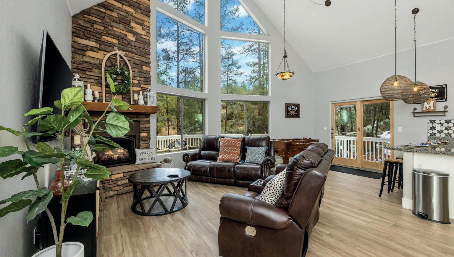 Majestically set amongst the pines of the premium subdivision, Kingswood Estates, this custom treasure is sure to enamor. From the endless mountain views off your private raised deck, to the warm interior, this home exquisitely captures the essence of Prescott living. Designed with privacy, yet comfort in mind, the home offers two levels of living. Each with separate entrances. The main floor offers a large but cozy living room with a stone front gas fireplace, a beautiful kitchen with granite countertops, an oversized master suite, and guest bedroom and bath. The views of Granite Mountain from your kitchen table are breathtaking! The lower level boasts a grand living space with a second gas fireplace, two bedrooms, and the 3rd bath. Enjoy soaking in the hot tub while soaking up the views!