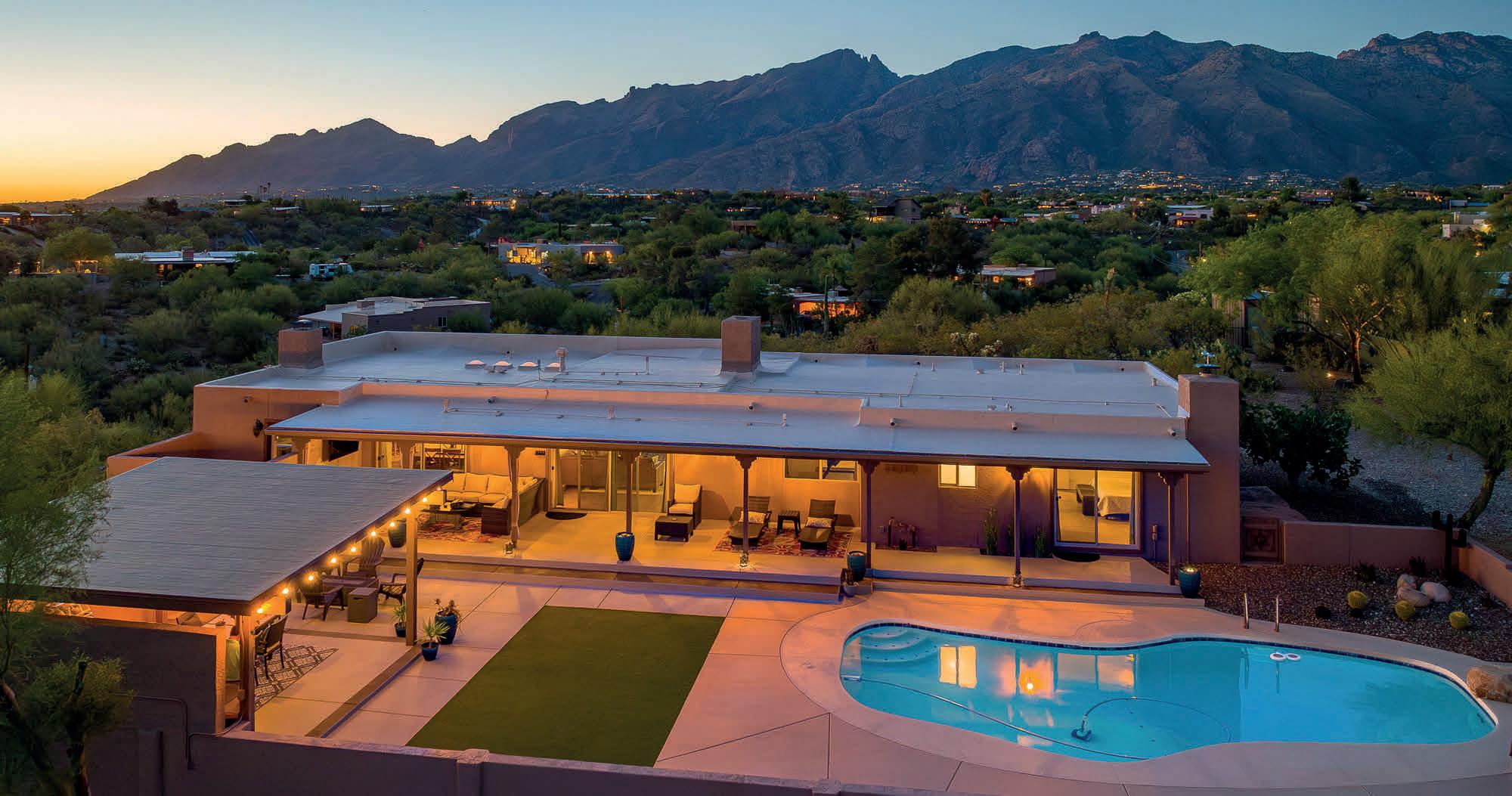 Stunning original LEWIS HALL in Flecha Caida Estates! This home is beautifully updated with amazing Catalina Mountain and City Views. 3 fireplaces, hand cut concrete paver floors and hand sawn beamed ceilings are just a few of the historical features. Add a spacious gourmet kitchen with stainless steel appliances, tons of storage, soft close cabinets and huge laundry room. Amazing outdoor spaces with sparkling pool, outdoor kitchen with BBQ, sink, fridge and lots of counter space. If you are in the market to buy, then don’t let anything stop you. This home will not disappoint.