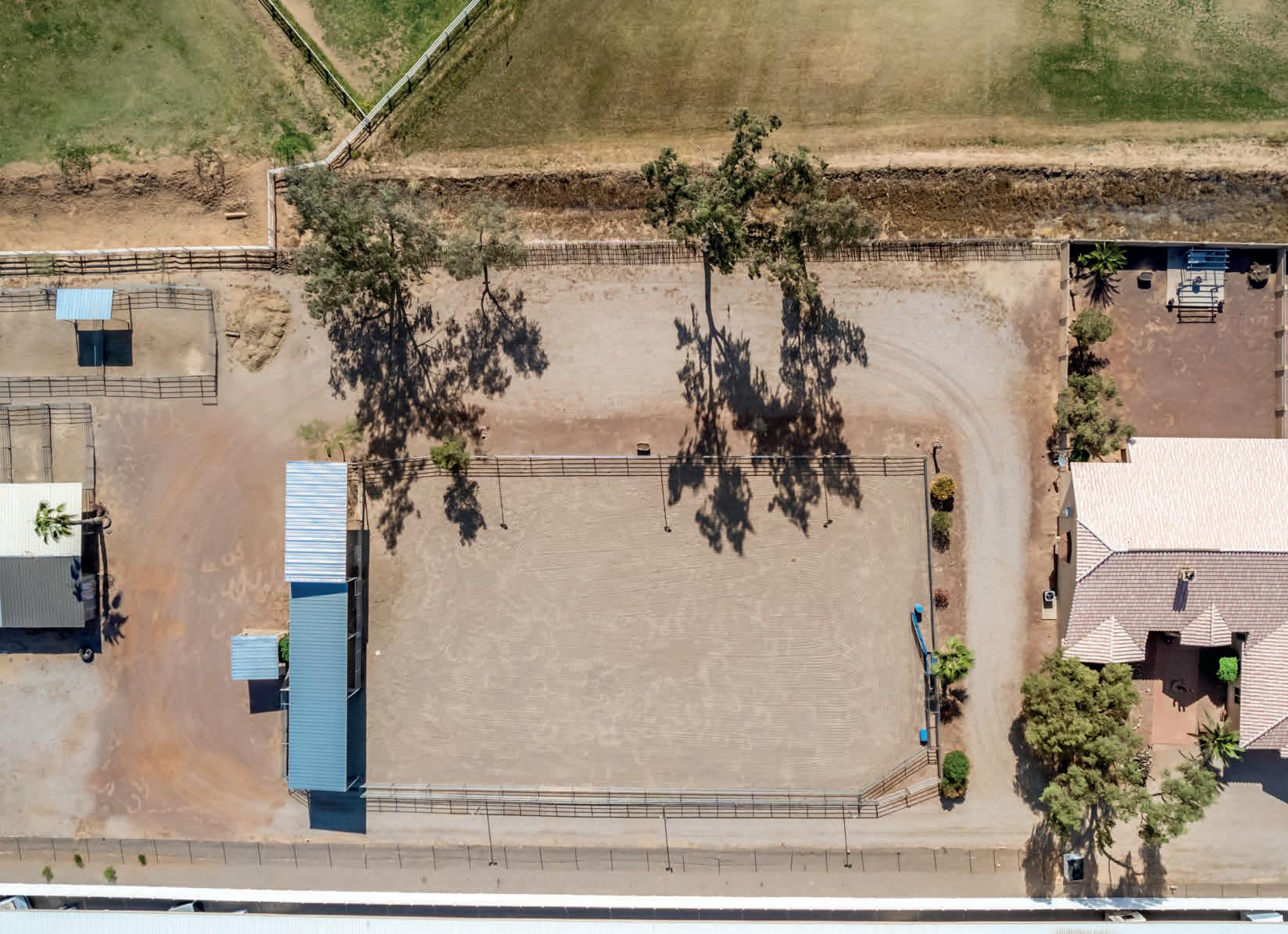 Stunning Architecture - this horse property offers a huge 4 bedrooms, 3 baths home with 20’ vaulted ceilings, 2 double sided fireplaces, large covered patio and a sparkling diving pool! Magnificent Front entry. 4 sets of sliding glass doors on the west patio side. Double master bedrooms. Main master is extremely spacious with and has double sided fireplace, whirlpool bath and sitting area. Exterior patio doors out to back yard which is full fenced with block for privacy. Horse Property! 180 x 95 lighted roping arena with sand footing, covered hay storage, 9 stall mare motel with tack room, large round pen, additional horse corrals with shade and RV parking with water and power. Circle Drive. Fully Fenced perimeter, Property has irrigation rights Very private. Seller will consider carryback with substantial down payment.