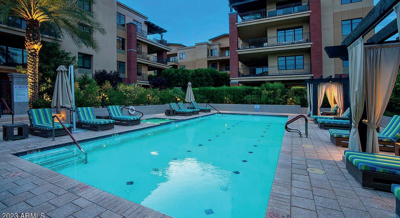 Welcome to the Enclave at Borgata. With only 86 residences and floor plans ranging from 1,500 to over 3,000 sq ft. This 2 bedrooms, 2 baths with bonus office has just over 1,600 sq ft. With its open floor plan, split masters, en suite guest rooms, ceilings, oversized balcony, with full-sized laundry room and gourmet kitchen. The High-end finishes include hardwood flooring, carrera marble countertops, beautiful cabinetry and designer lighting and plumbing fixtures. Luxury amenities include a gated entrance, resident services coordinators, club room and gardens, heated pool and spa, dog park, fully-equipped fitness studio and a walking path. This lock and leave home is inclusive of a two car garage with ample storage. One of the most exclusive and affluent addresses in the nation. The Enclave at Borgata lies adjacent to The Town of Paradise Valley. Perhaps, more important, there are few places more breathtaking than this small slice of the world, where the City of Scottsdale meets The Town of Paradise Valley. Furthermore, The Enclave is surrounded by world-class resorts including: The Phoenician, Sanctuary, The Camelback Inn, Montelucia and Hyatt Regency at Gainey Ranch. At Lincoln Drive and Scottsdale Road, it all comes together, offering the finest restaurants, entertainment, shopping, culture and recreation. Together, Scottsdale and Paradise Valley create an exclusive, yet comfortable neighborhood, all within walking distance. BONUS, Dog Park only 1.5 Miles away along with the Silverado Golf Course just over a mile to the east